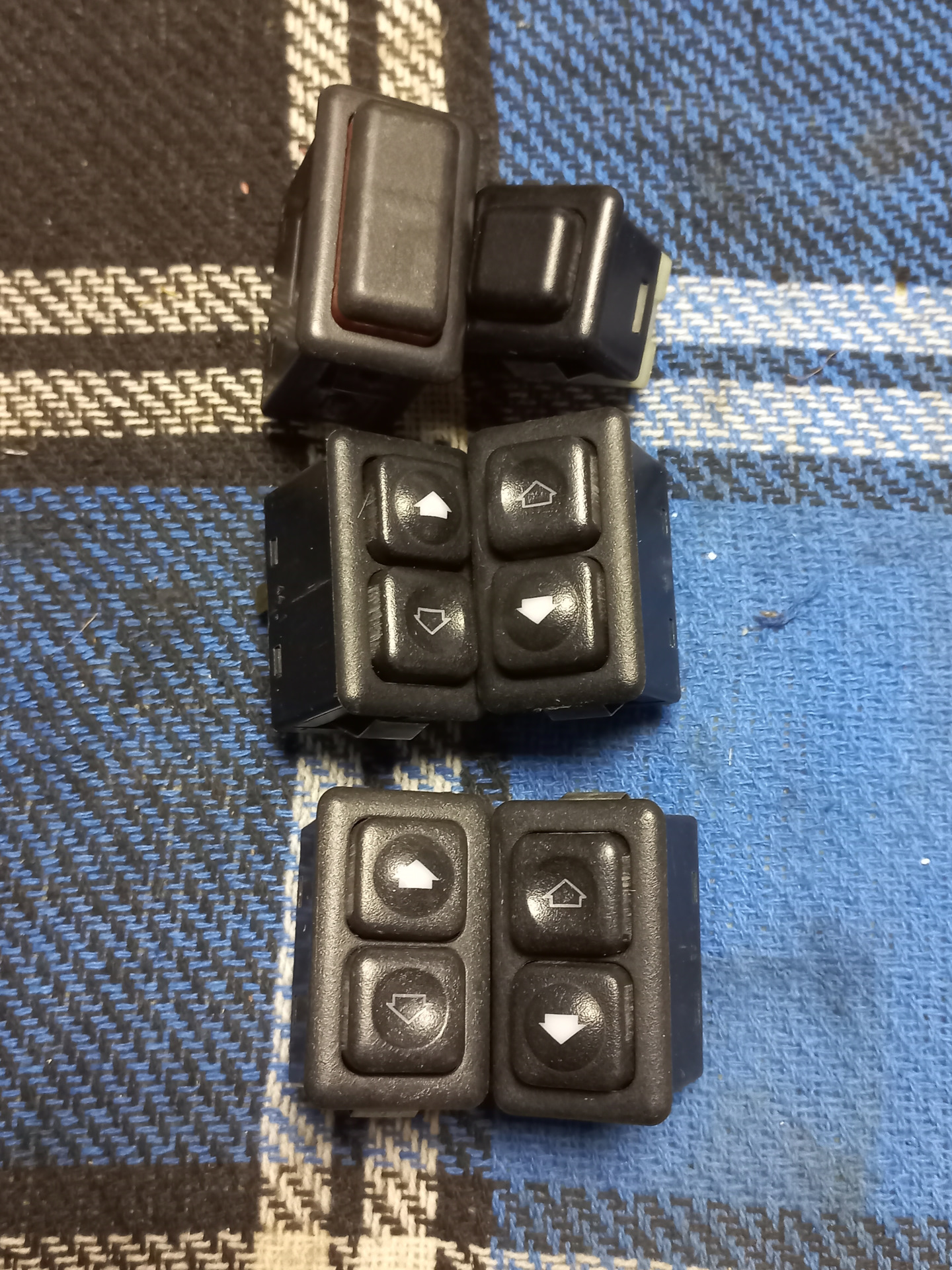 Потом купил к ним комплект оригинальных кнопок — четыре основные кнопки с подсветкой (две в консоль, и две в задние карты), блокировка задних ЭСП, и общий автоматический предохранитель (будет запасной).