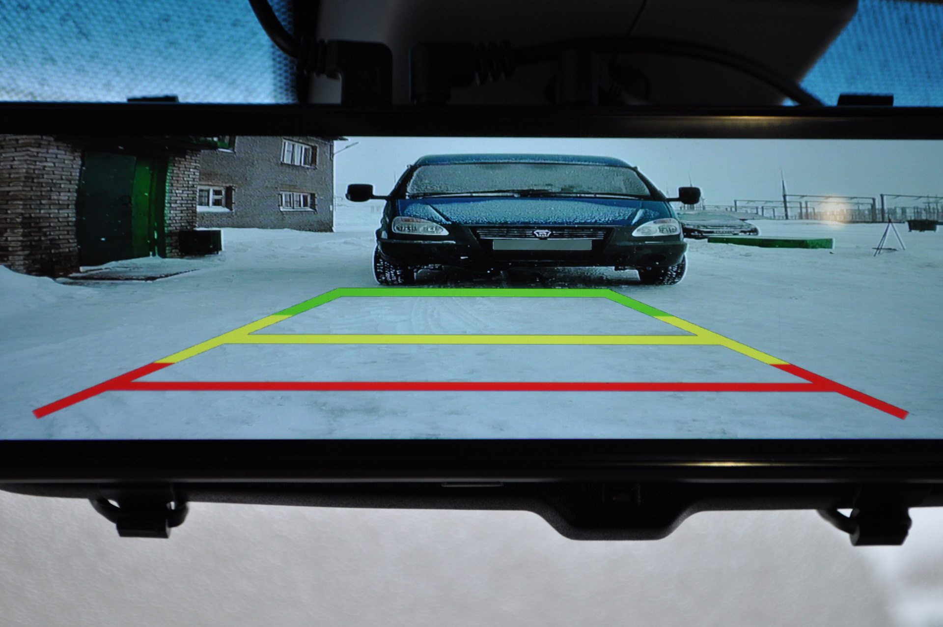 А чтобы заднюю камеру не закидывало дождем, грязью и снегом, можно установить ее внутри салона на двери багажника в секторе действия заднего стекло очистителя. Да, будет немного высоковато для парковочных линий, зато всегда чисто и далеко видно.