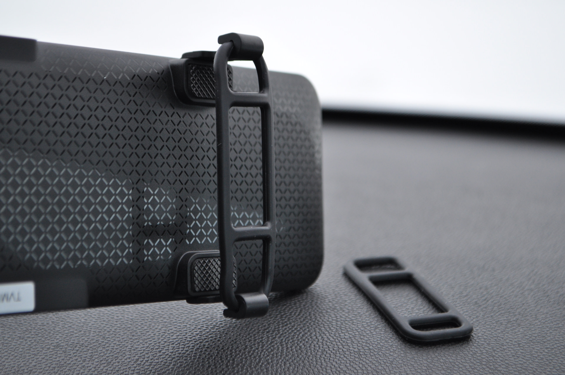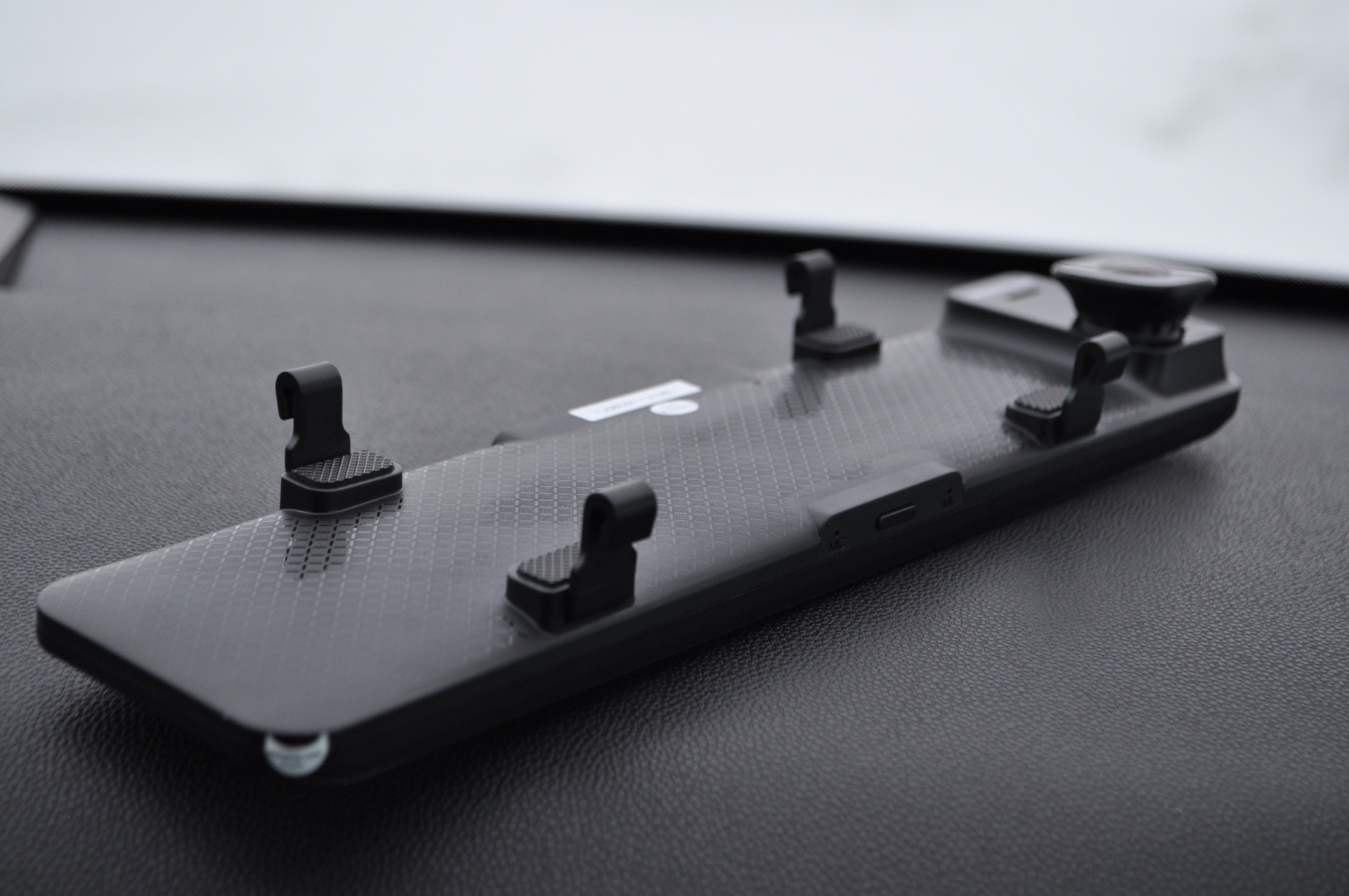 Крепится видеорегистратор к стандартному внутрисалонному зеркалу заднего вида с помощью двух силиконовых стяжек. Как говорится, просто и надежно.