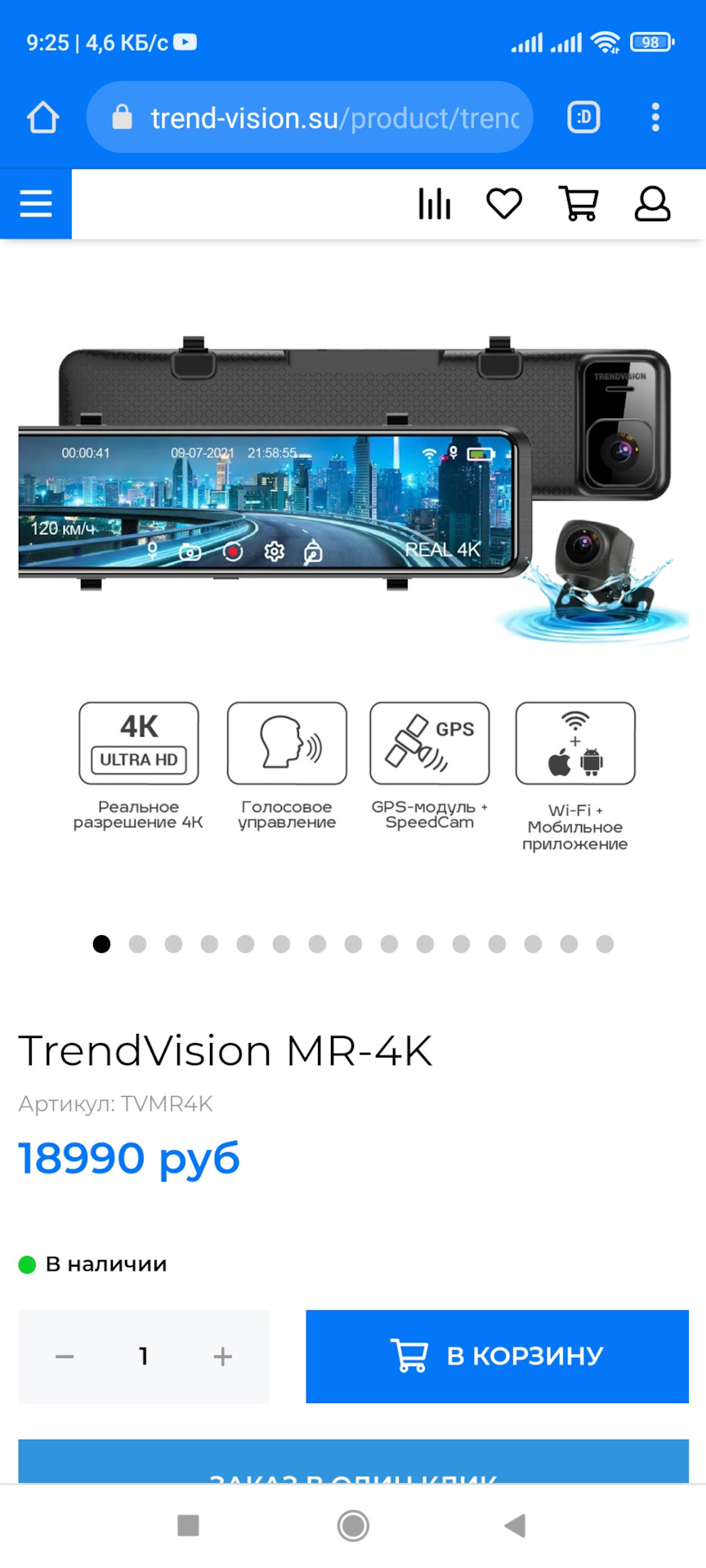 Топовое устройство. Я тоже думал в сторону такого, но форм фактор не очень для меня. Козырьки не откладываются до конца. Мне не критично, а вот на пассажирском привыкли пользоваться зеркалом))) поэтому мой вариант это Trendvision mini 4 k.