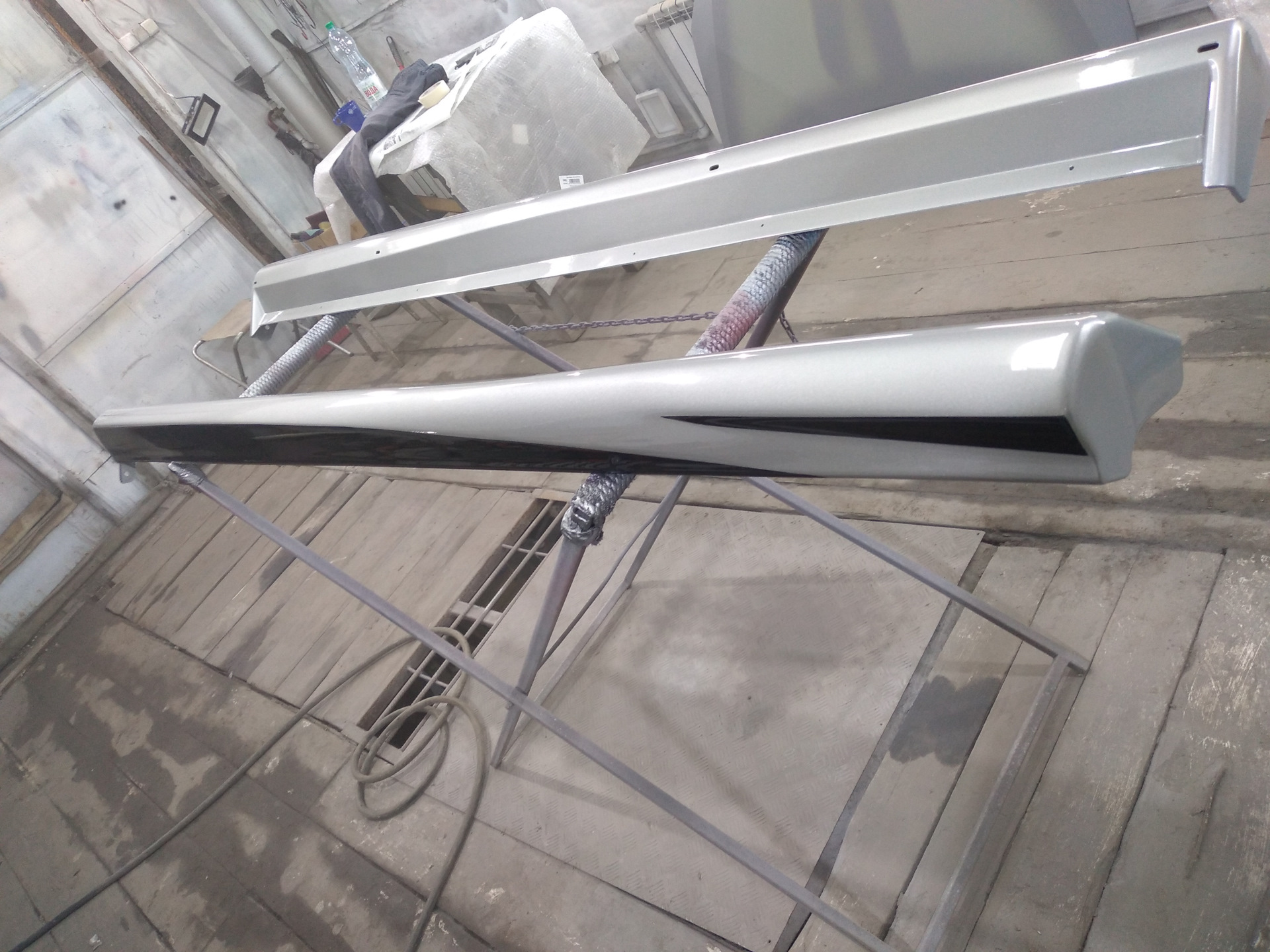 Всем привет, после покупки порогов совсем не было времени заняться ими . И вот дошли руки и мои и мастера) все получилось как и задумал.Сохнут. И можно устанавливать на авто . Будет законченный вид . И обвес в стиле сраля на 100 процентов