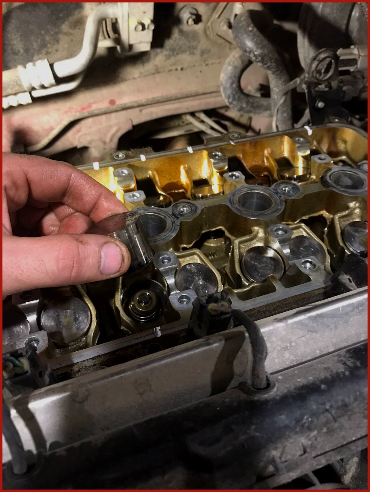 Сняли клапанную крышку, начали разбираться.
