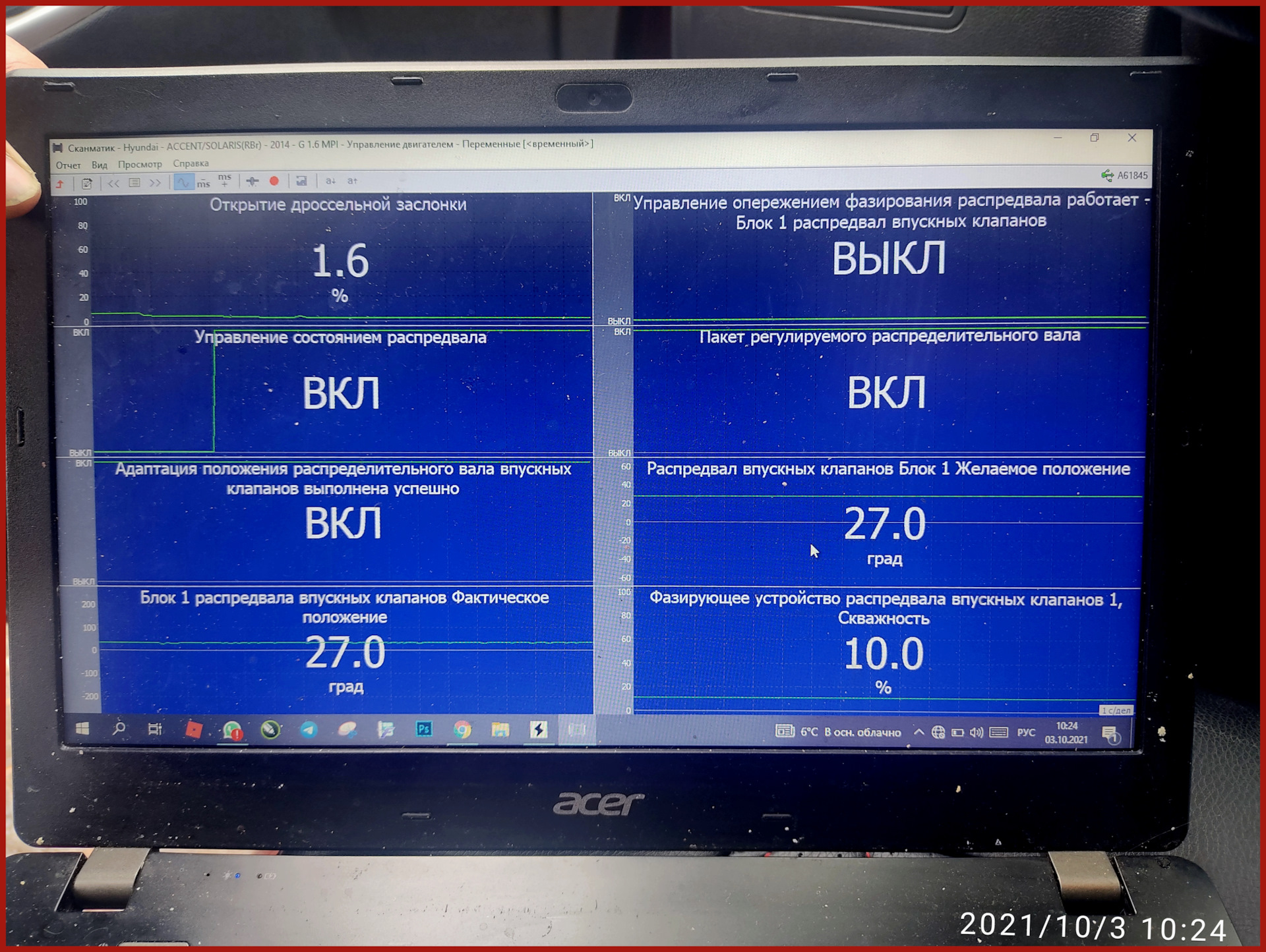 Желаемое и фактическое положение впускного распредвала совпадает, ошибок Р0011, Р0340 нет, за что большой респект Антону.