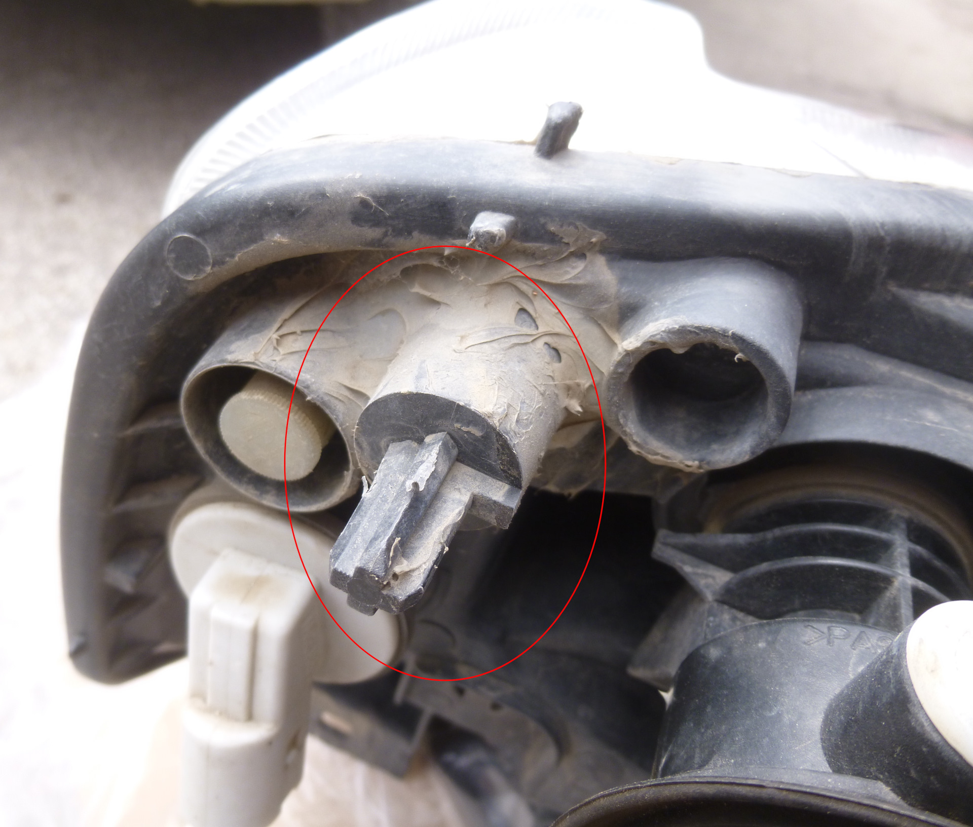 Однако с приходом положительных температур, по весне, я обнаружил, что у меня потеет левая передняя фара. Сначала я даже не связал данное событие с моей аварией. Просто подумал, что от времени фара потеряла герметичность. Но демонтировав её, я увидел, что у меня срезана одна из направляющих. Видимо при ударе бампер "сыграл" и получился такой результат.