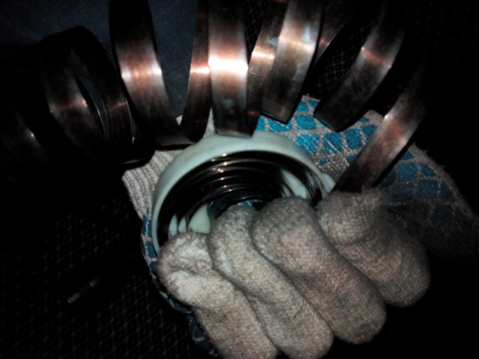 ремень сам в катушку возвращался не полностью, ну, думаю, коли разобрал, грех не отремонтировать и это! раскрутил вторую крышку, ту, что потоньше, которую так убедительно ребята просили не трогать, ну я ее малёху отодвинул, поглядел, там в общем-то тоже ленточная пружинка, думаю, может тоже "растянулась", щас подтянем, ну и давай крутить ее прям в таком вот состоянии