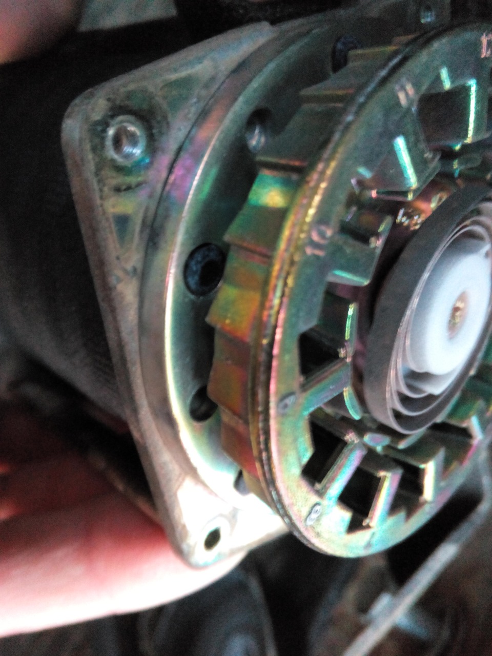потом до меня дошло, что сектор придерживает как раз та ленточная пружинка! получается, что она "растянулась" и ее нужно всего лишь подтянуть! все гениально просто;) подтянул я ее где-то на 180 градусов, проверил ремень и ремень стал выходить как на новой тойоте (не преувеличиваю, скорее преуменьшаю)))