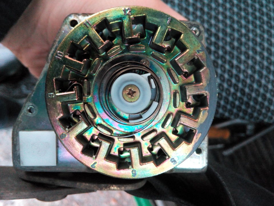 полазал на сайте, выяснил, что там какой-то шарик есть и в большинстве случаев именно он мозги делает, как я понял, он удерживает ремень в случае переворота автомобиля, мол машина переворачивается, шарик из своего паза выскакивает и стопорит ремень, так вот кто-то советует шарик выкинуть и не париться, кто-то критикует их, мол ремень работать перестанет, а кто-то посоветовал просто паз шарика чуть чуть сверлом рассверлить, чтобы шарик глубже сидел и лишний раз беспричинно не стопорил ремень, я решил сделать также. На катушке две крышки, все говорили откручивать ту крышку, которая толще, ну ок.