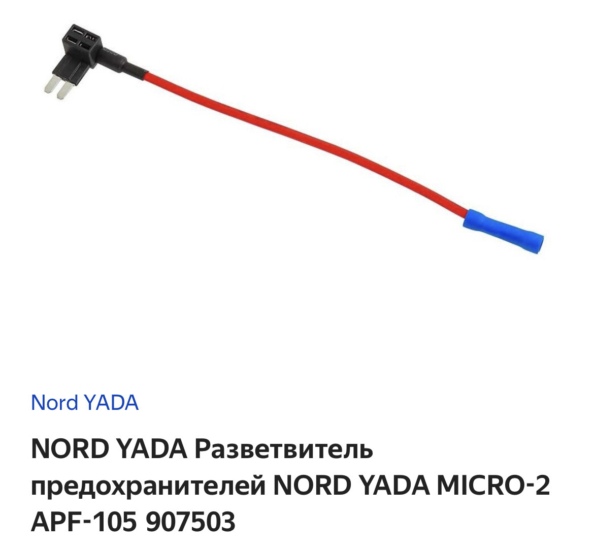 Провод на регистратор протянул от салонного блока предохранителей через левую стойку, потолок, а затем через датчик дождя за зеркало заднего вида уже непосредственно к самому устройству. В блок предохранителей по опыту ACE42 (спасибо!👍) вставил разветвитель и в него два предохранителя по 10А. Разветвитель приобрел на Я.Маркете (285 р.):