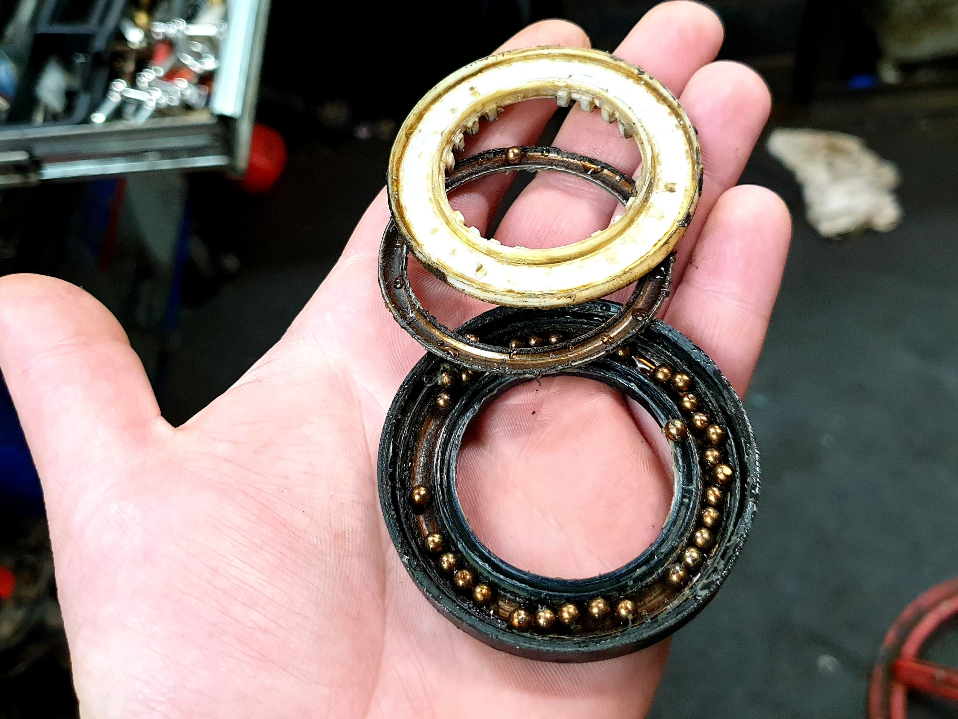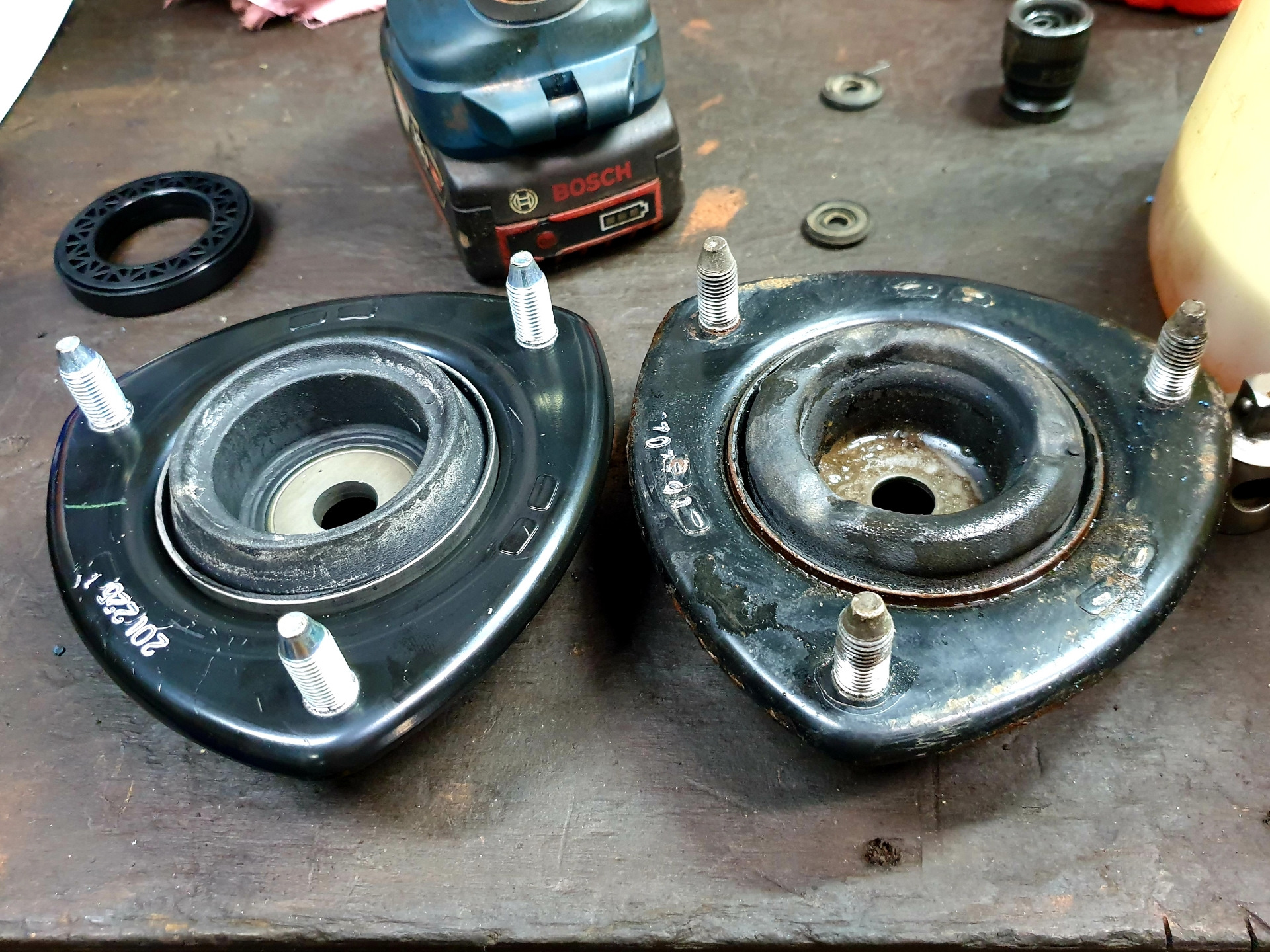 Разобрав, увидели дорестайловые опоры. Проехал на машине 60к км (общий пробег 155000 км.), а стук начался только 3000 назад!