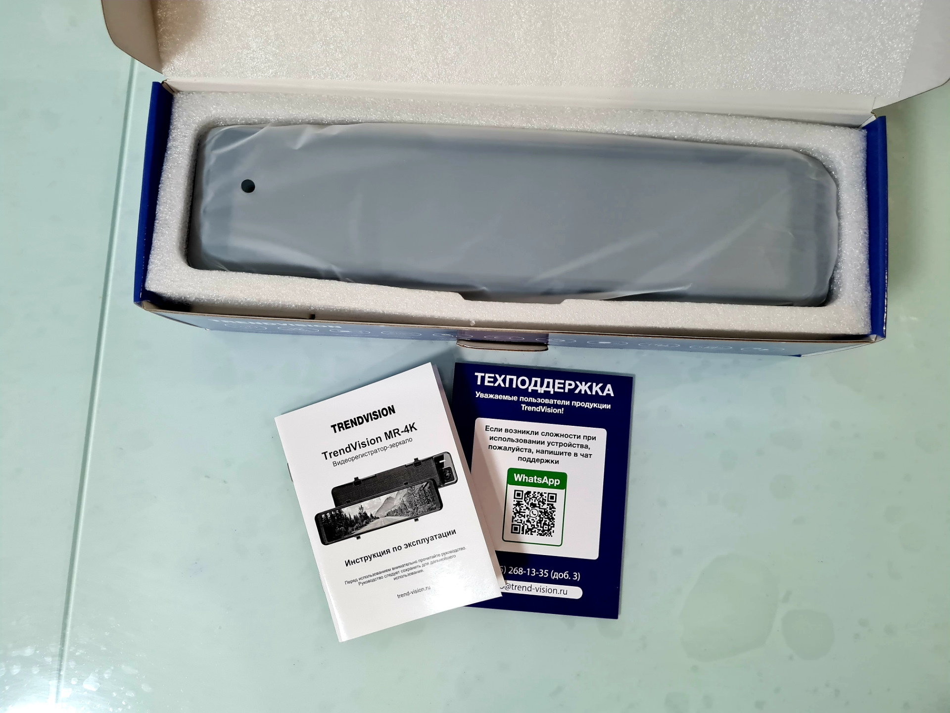 Видеорегистратор-зеркало MR-4K, Силиконовые стяжки, Задняя камера, Кабель для задней камеры, GPS-модуль, Автомобильное зарядное устройство, Инструкция с гарантийным талоном.