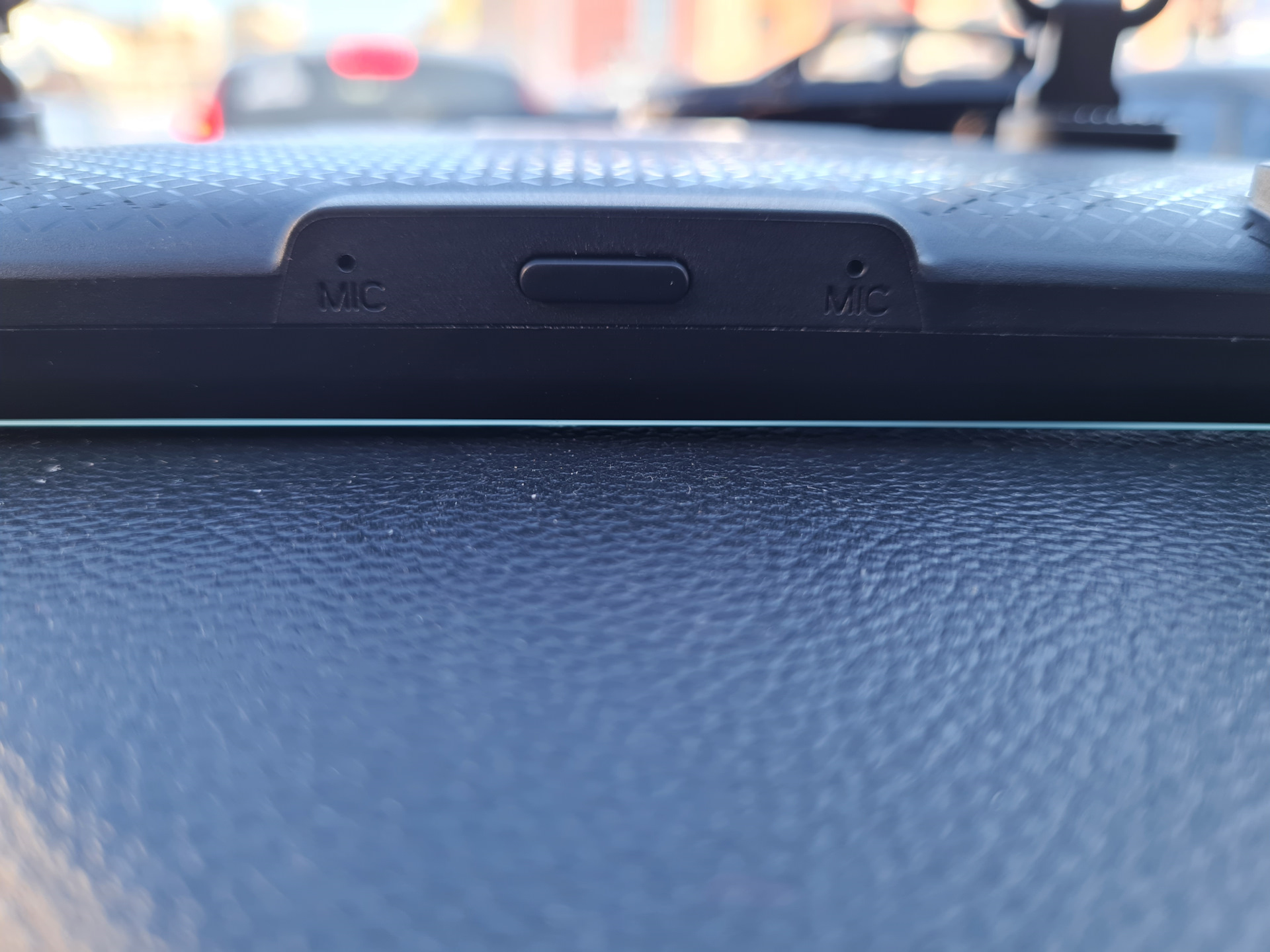В нижней части видеорегистратора расположена единственная кнопка по центру и отвечает за включение/выключение. И два микрофона.