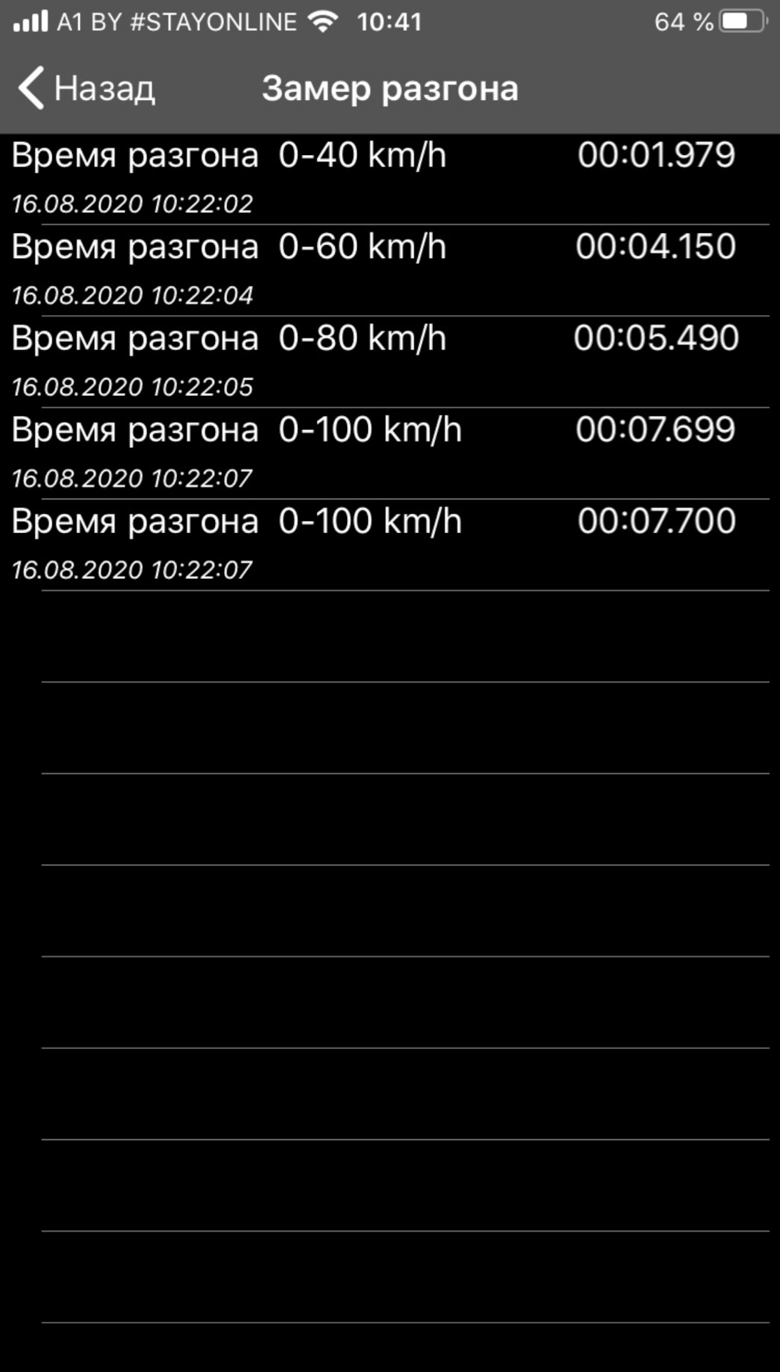 Не поверишь, когда на прибор погнал меряться, по трассе чуток проехали (на нормальное место, где можно ехать 100🤣), после первого замера я опечалился капец… 8.9 где-то выдало. Думал что Саня был прав, что приложение врет сильно. Не много разозлился, и поехал на второй круг. Почувствовал что быстрее идёт, ииии 7.95. Погнал на третий круг, и вот 7.84)))) успокоился, отпустило, пожалел машину, и домой довольный😁😁