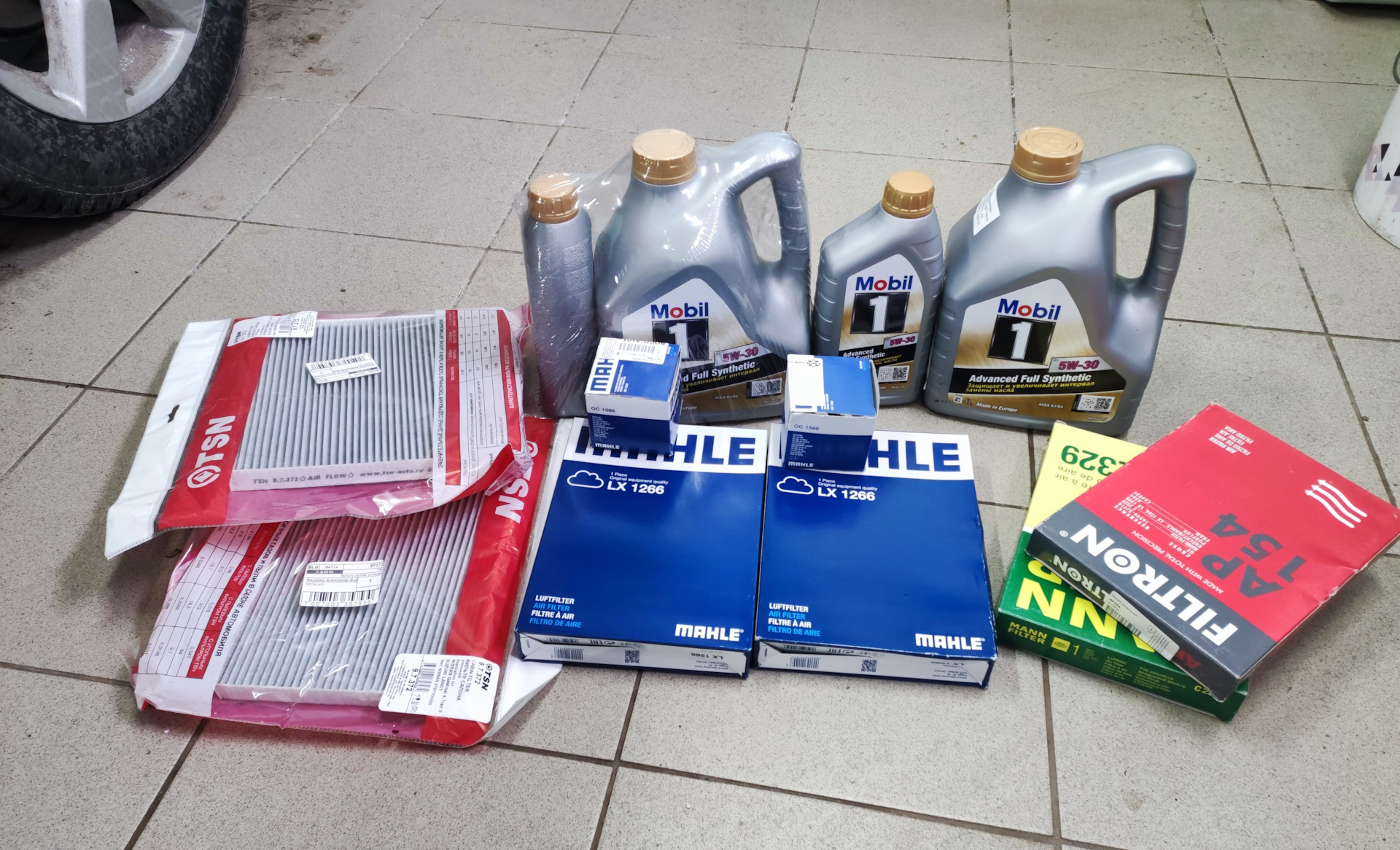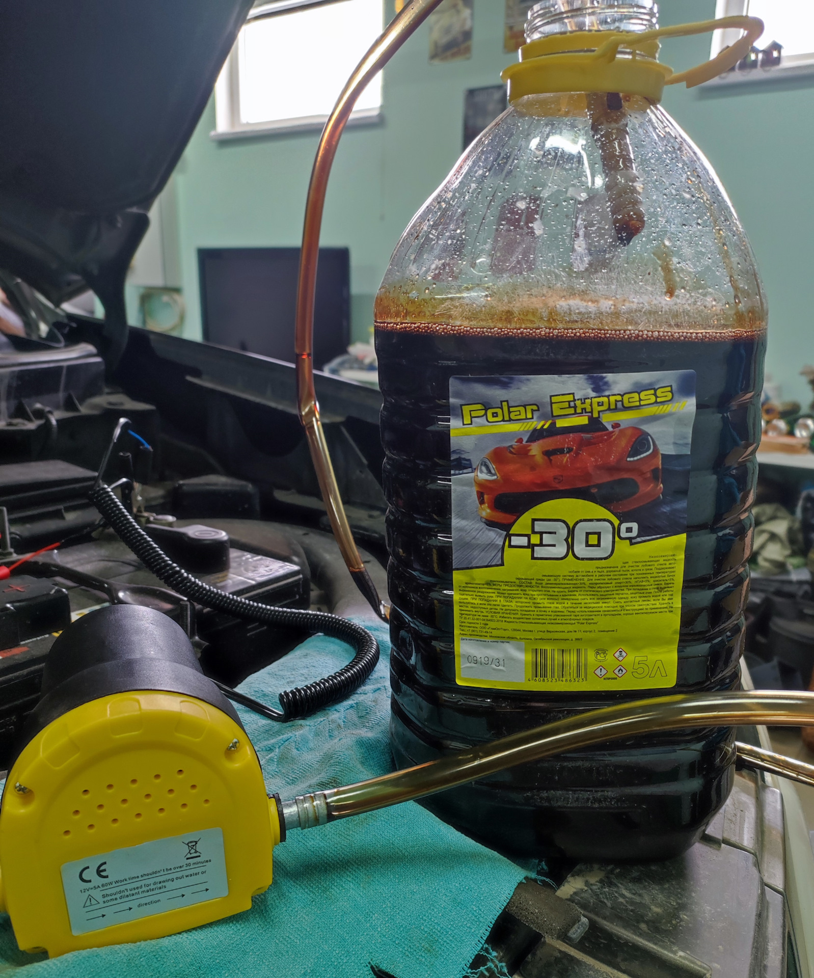 Ну вот и откатал еще 10 ткм. Пора менять расходники. Как-то сложилось на этой машине, что беру по 2 комплекта всего для замены сразу после того как залью последнее масло при очередном ТО. Вот и сейчас у меня были в наличии масла фильтра, купленные еще в декабре прошлого года по хорошим ценам, не то, что сейчас, все в 2 раза подскочило. Набор стандартный для меня, масло Мобил, фильтр масляный Mahle ОС1566, воздушный Mahle LX1266, салонный угольный TSN. Еще осенью решил взять насос для откачки масла через щуп. Поддался общему соблазну)), т.к. тут многие смотрю тоже используют аналогичные. Брал на Али с площадки Тмолл рублей за 800-900 вроде. Особо я конечно не верил в него, всегда привык сливать масло через пробку. Но вот результат конечно меня удивил. Получилось, что выкачал я этим насосом столько же сколько заливал. А заливал в прошлый раз как обычно 5 литров, но потом тоже попалась статья, что оптимально это середина меток. Откачал 0,5 литра, думаю если уровень снизится тыс через 5-6 км, то долью. Результат тоже меня удивил, уровень остался таким же. Хотя возможно это просто зимний период, и я особо мотор не крутил, ездил в спокойном режиме. Сейчас тоже залил 4,5 литра, это уровень ровно посередине меток. Посмотрим, что будет дальше. Старое масло специально сливал в 5литровую баклаху, чтобы посмотреть сколько же сможет выкачать насос. В сравнении с новой омывайкой примерно так и получается.