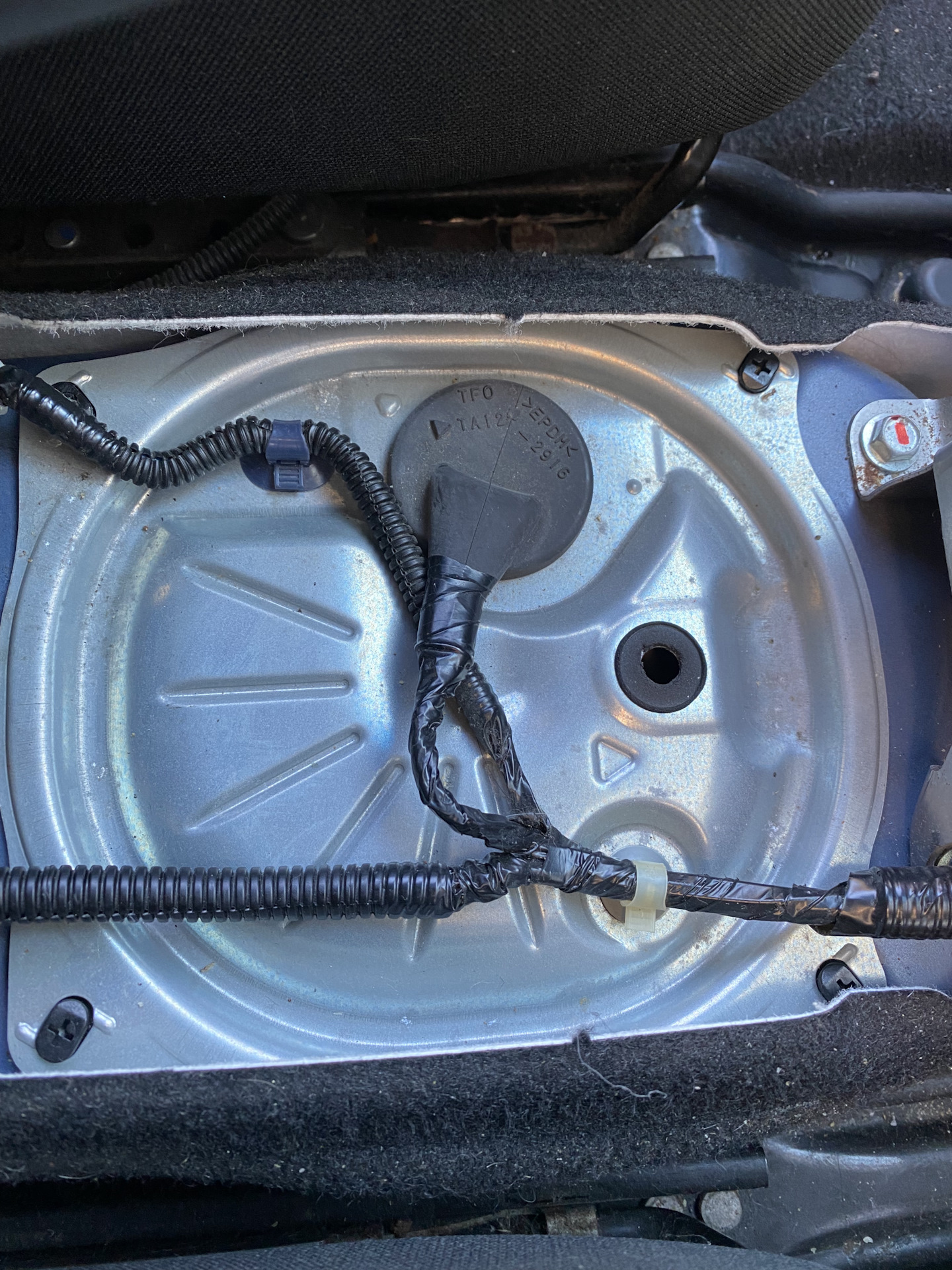 Затем сняв консоль между сидений, и наконец добравшись до топливного насоса я решил немного прибраться, т.к наблюдалось много пыли, волос, и прочего мусора.Я все пропылесосил, и продул воздухом во избежании попадания мусора в бак.