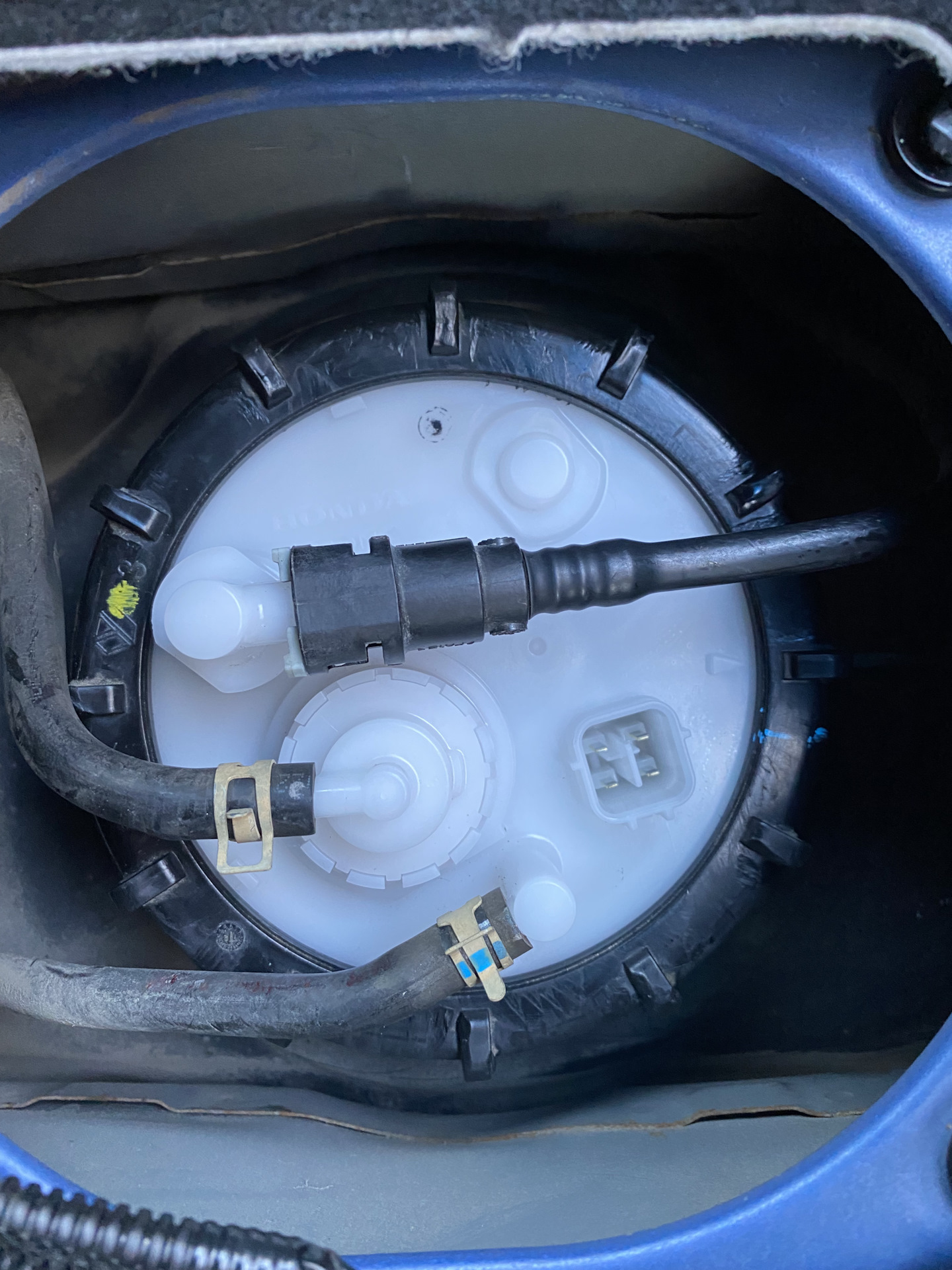 Снял все разъёмы, и шланги, открутил крепеж топливного насоса, затем аккуратно отсоединил датчик уровня топлива, и только после этого топливный насос вышел из бака.