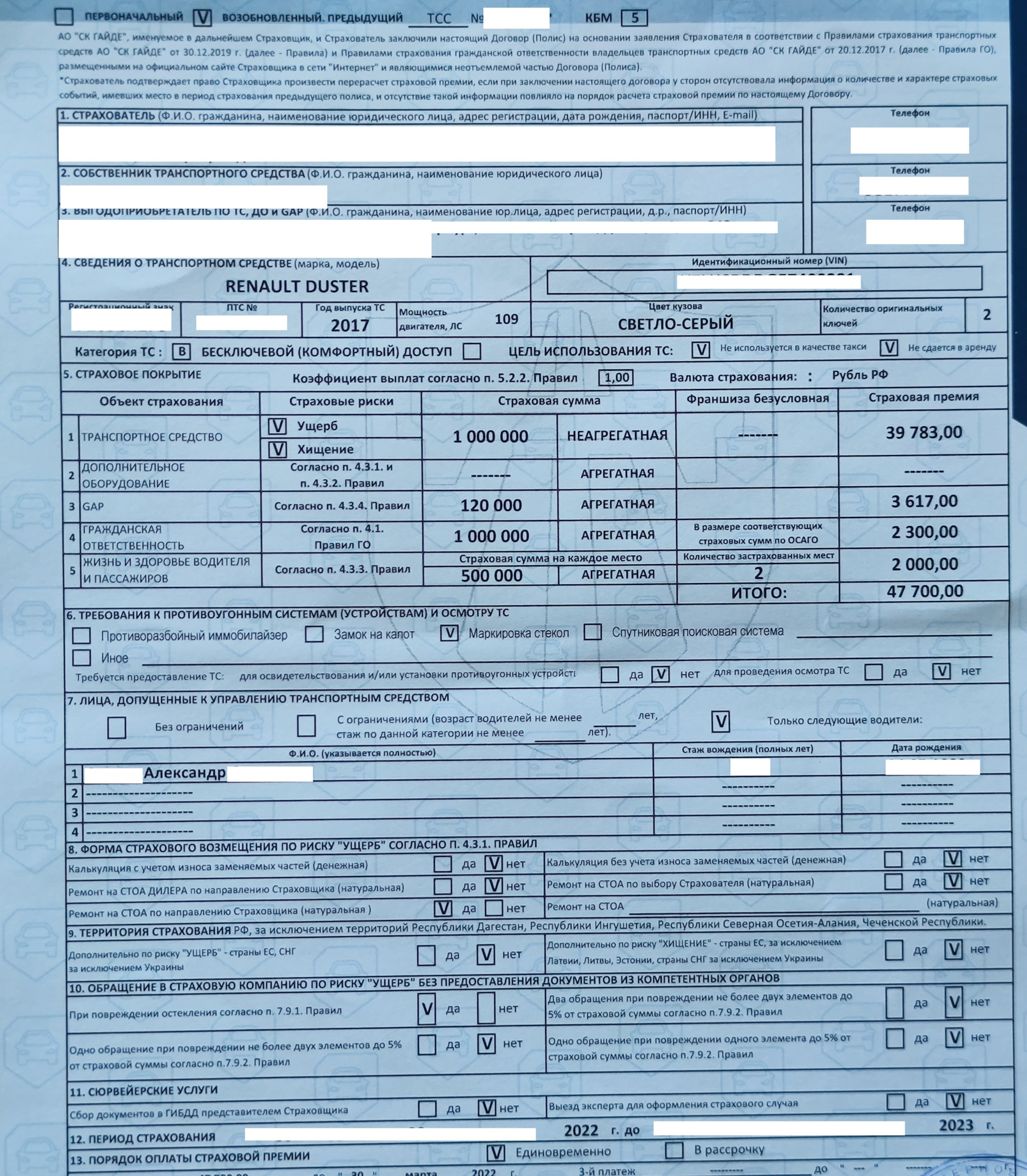 В итоге все страховки на мой рестайлинг вышли в сумме в 47 322,85 руб.