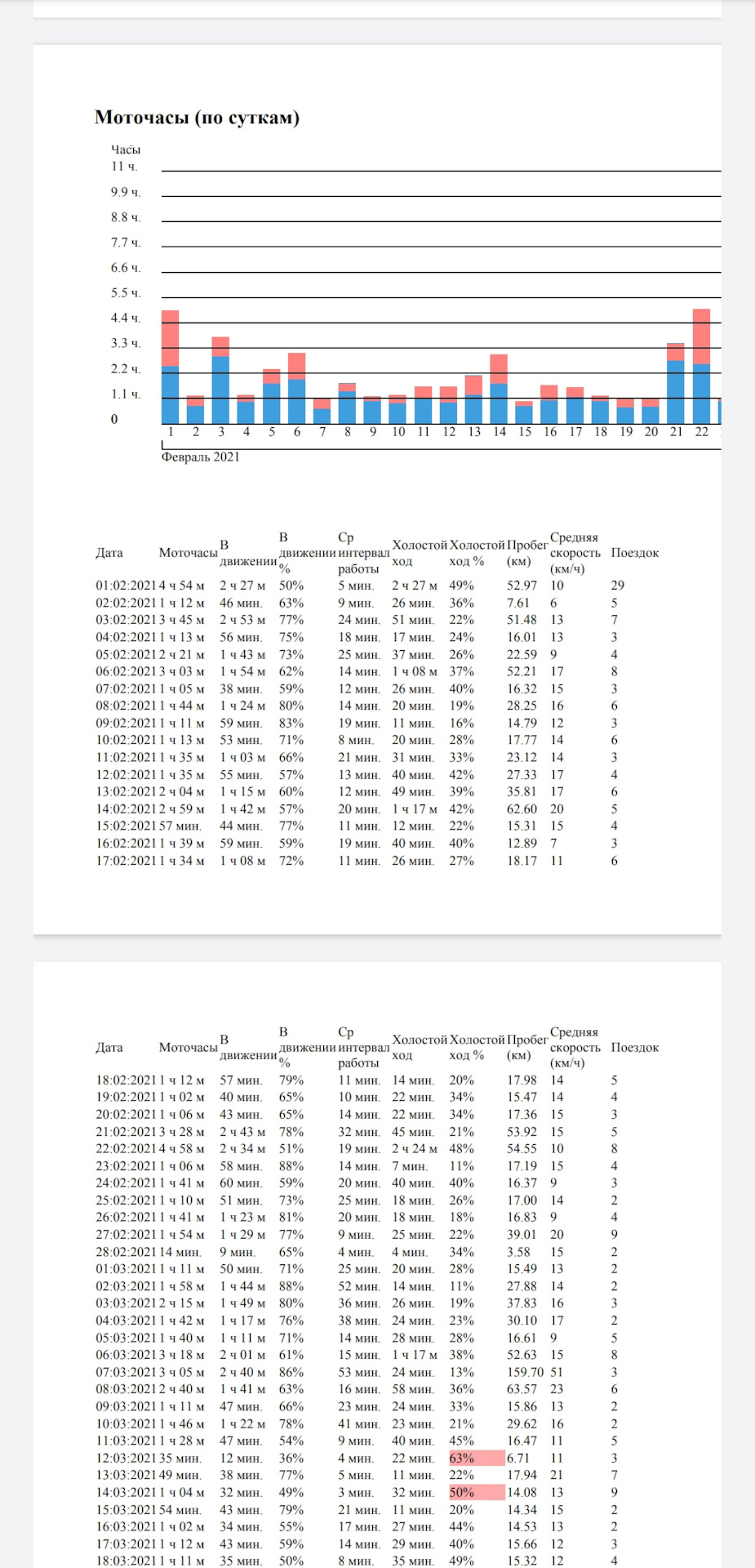 Используя статистику с сервиса спутниковой сигнализации выгрузил себе отчёт о пройденных моточасах.