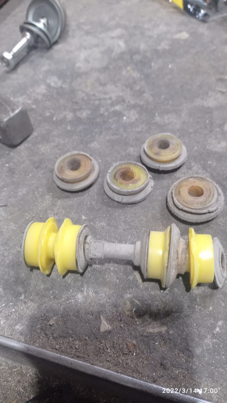 Тоже нужно поменять. Но там со слов фунтоводов полиуретан нельзя. Пескоструит стабилизатор. И потом болтается. Похоже у тебя так и случилось