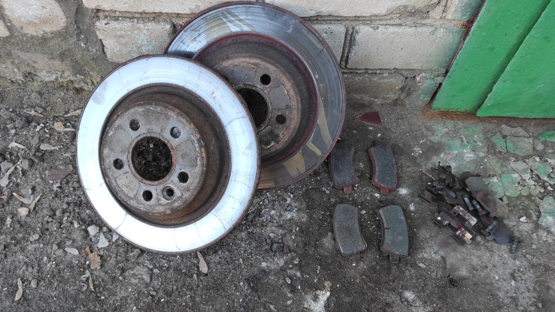 Если диски ещё бы походили, то вот колодки были уже с критическим износом.