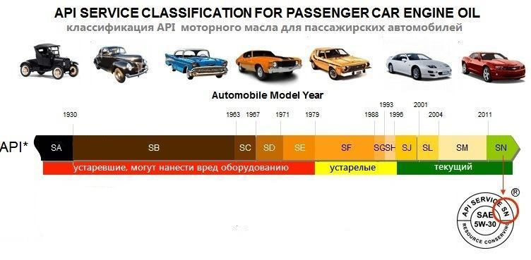 Исходя из картинки мы видим, что чем новее автомобиль, тем более свежий допуск масла требуется заливать в двигатель. Вот только не всегда новый автомобиль оснащается современным конструктивно сложным двигателем. На данный момент уже появились такие допуска как SN PLUS и SP, и чем они лучше предыдущих конечно же непонятно(бывает даже смотришь анализ масла SN и SN PLUS и пакет присадок в SN PLUS меньше), понятно одно – цена будет выше чем за старый допуск.