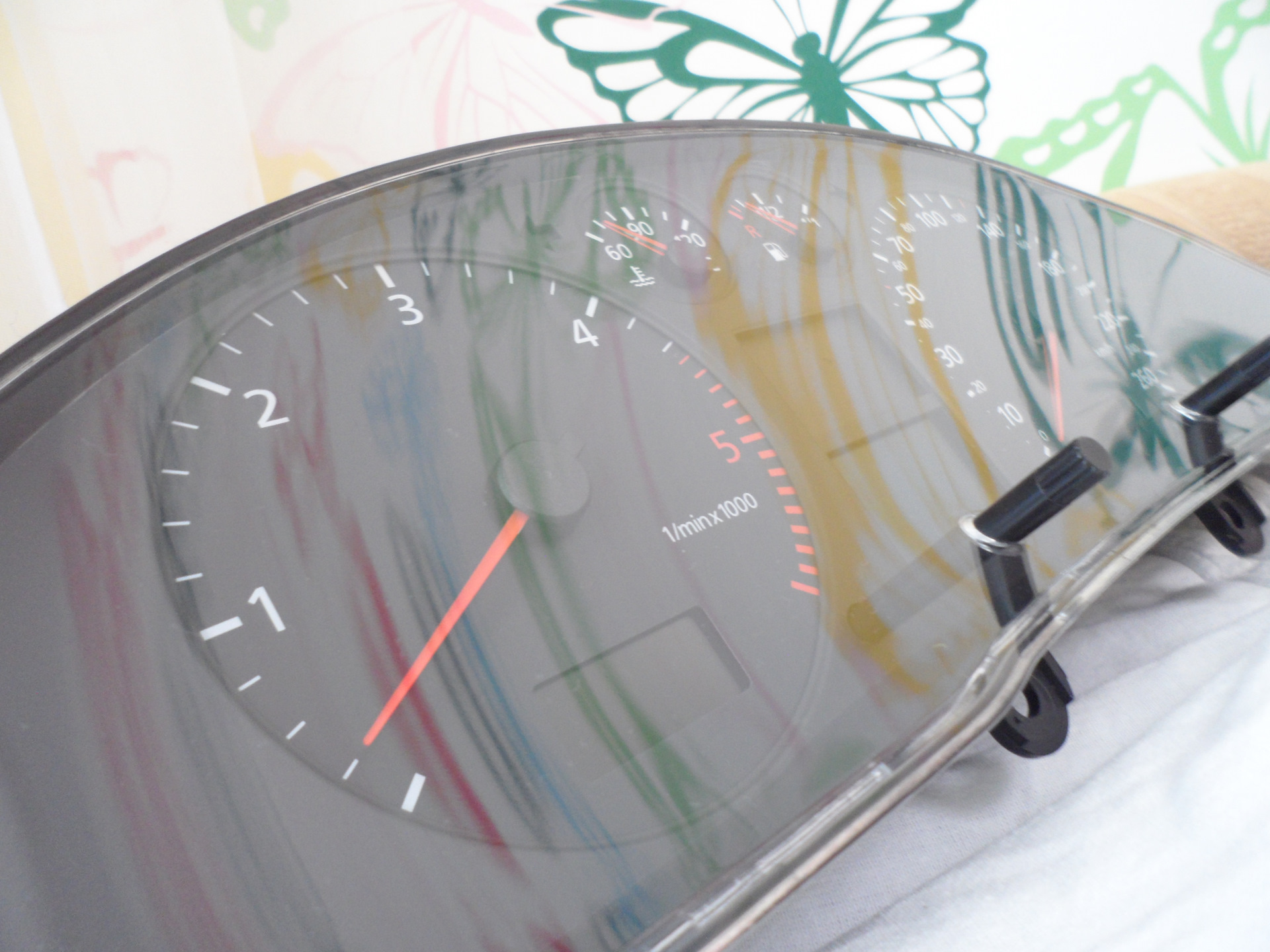 Разьединяем защелки приборки и снимаем стекло., запечатываем маляркой отверстия, т.к. если палироль попадет на черный пластик отмыть ее крайне тяжело. Берем 3000 трезак(в моем случае царапины не глубокие и за 2 прохода они сровнялись), можно 1000, 2000 в завис от глубины царапин и шлифуем всю целиком с водой.