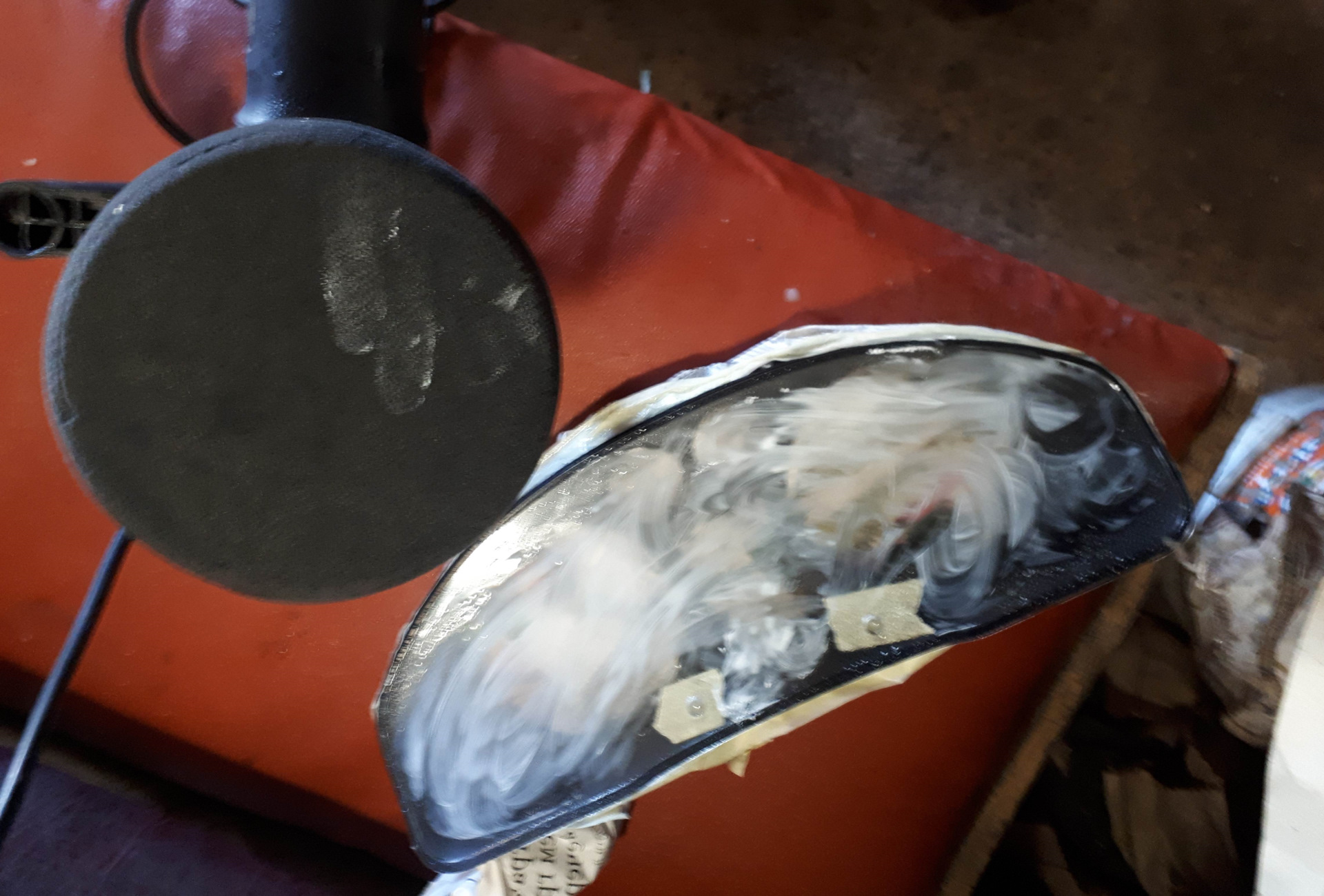 Следу.щий этап 3 вида пасты разной зернистости от метзерны с мягким паралоновым кругом и водичкой дабы не перегреть пластик.