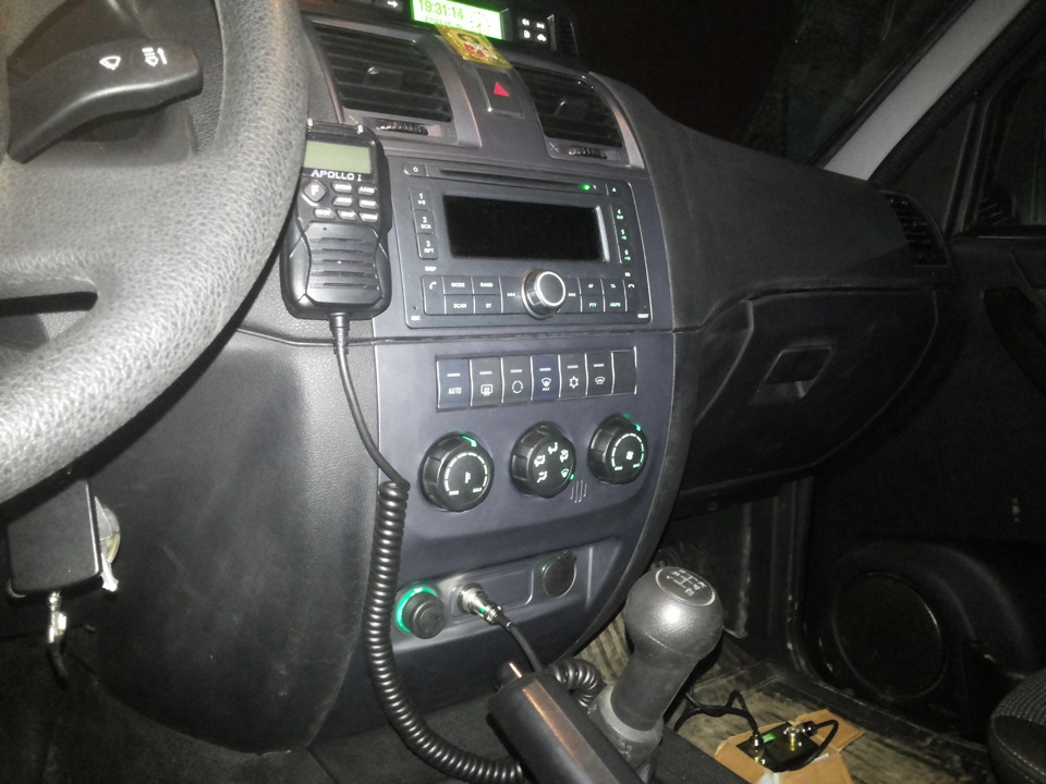 Вырезал потолок параллельно установив новую люстру. Воткнул антенну, залив всё герметиком. Кабеля проводил по потолку к левой передней стойке, штатный антенный заизолировал и закинул за потолок, до лета(буду делать шумо-вибро потолка). Местечко для блока рации нашёл справа от рулевой колонки, там есть отверстие под болт. Много писать не буду, лучше прокомментирую фото.