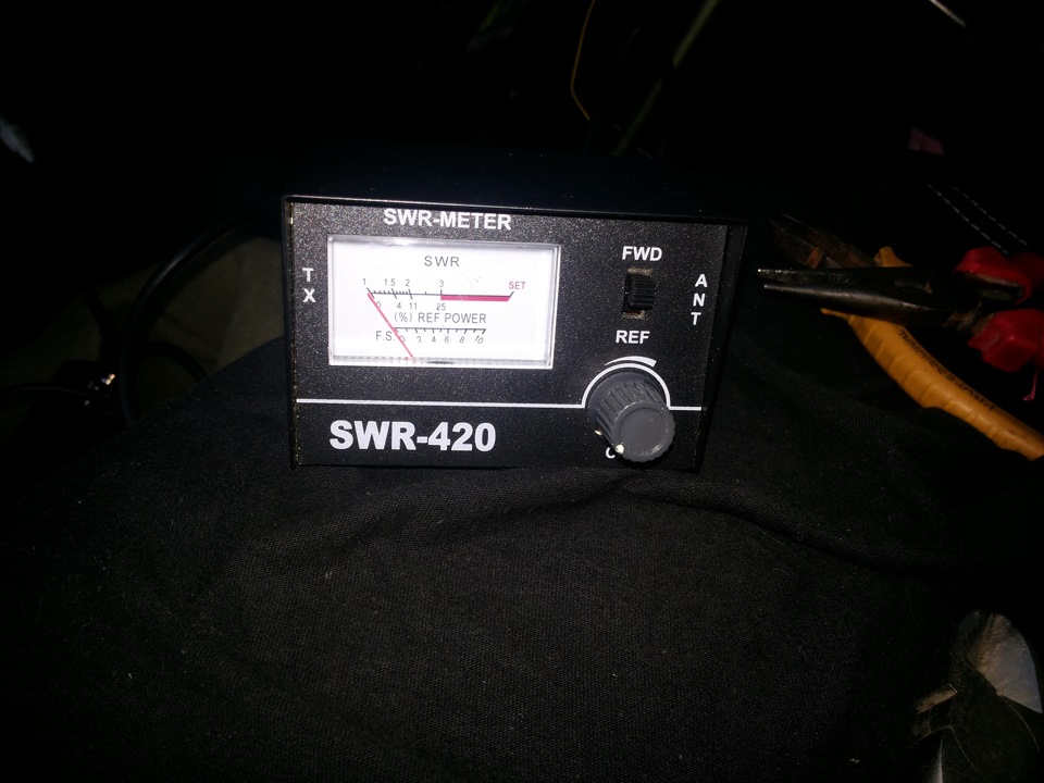 Рация и антенна. На полу КСВ-метр для настройки коэффициента стоячей волны.