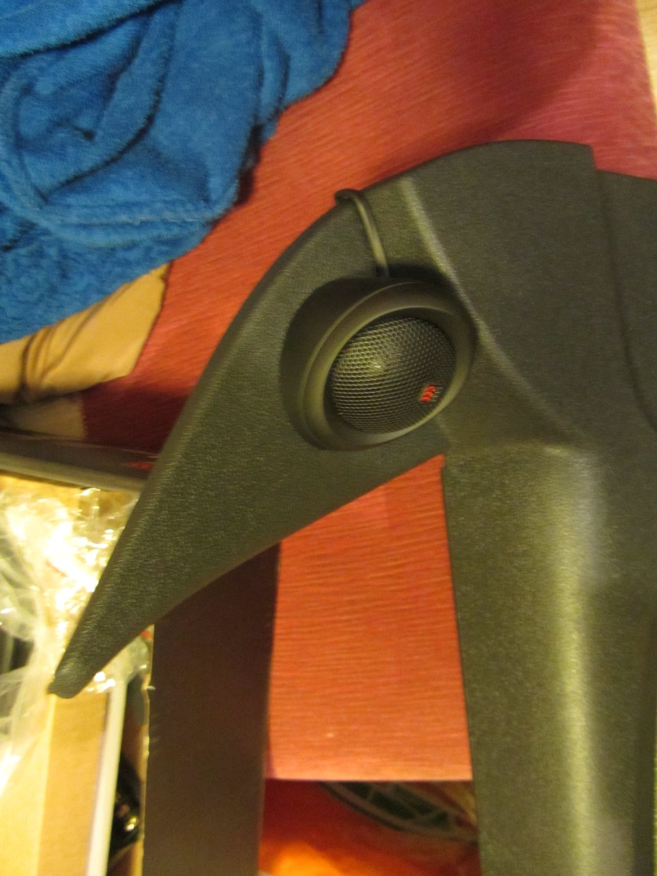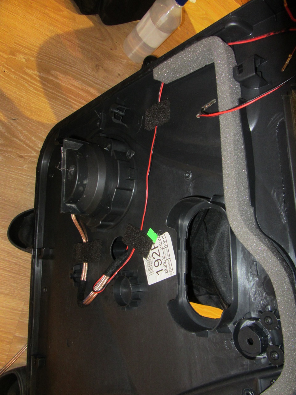Кроссоверы пришлось разобрать и вставить в карман над динамиком. Соответственно, динамик стоит в шатном месте и прикручен саморезами в 4 новые дырки.
