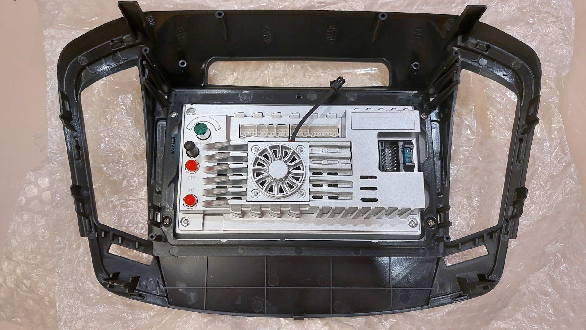 Рамка магнитолы в моем случае изменена, угол наклона. Оптический выход штатно устанавливается на модели от 4/64.