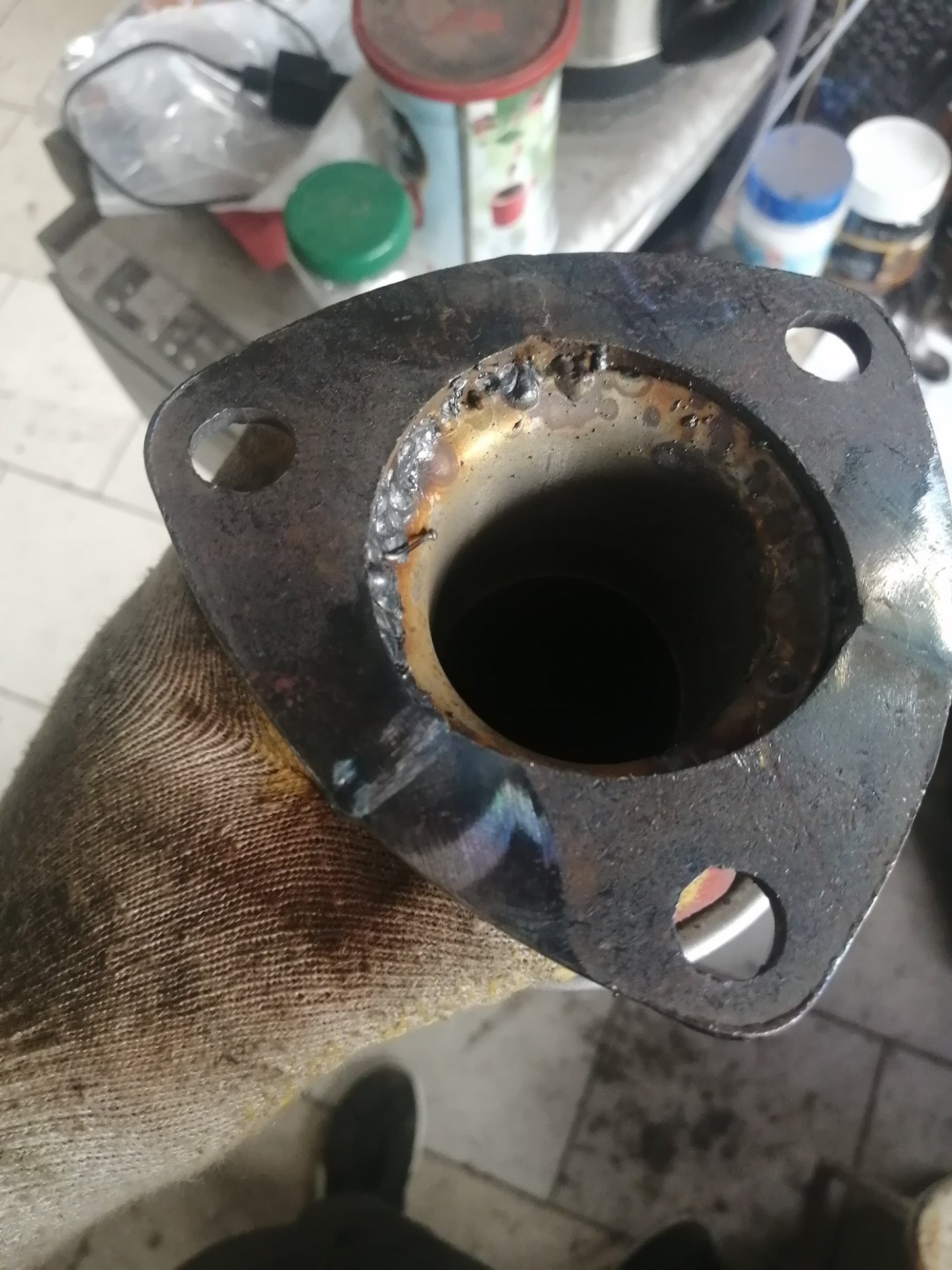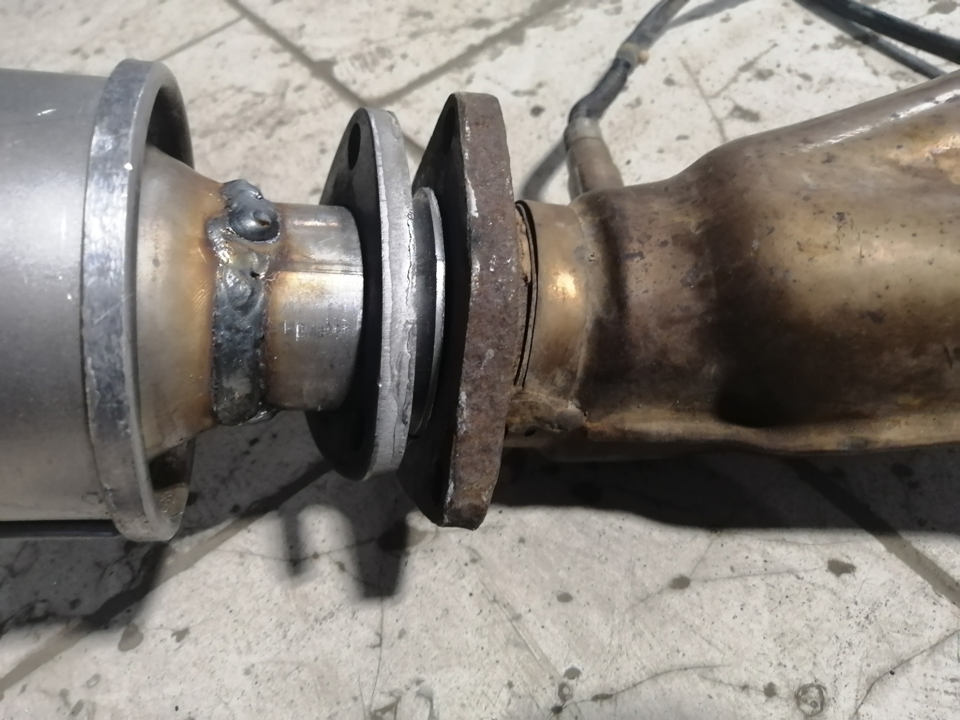 Как то не тем путем пошёл. Там фланец от русской тачки видимо, надо было ответную часть найти и приварить к штатной трубе. Можно было не бегать и не пилить лишний раз.