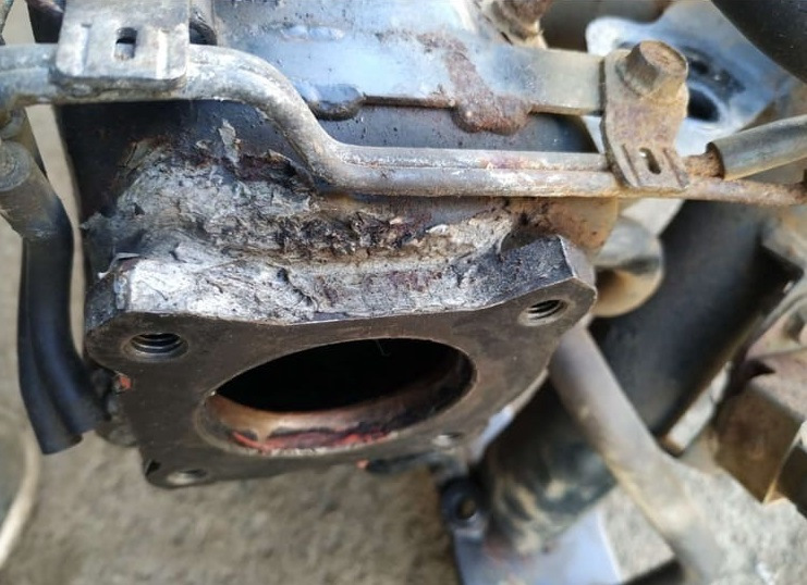 Трещина во впускном коллектора в месте примыкания дроссельной заслонки к нему.