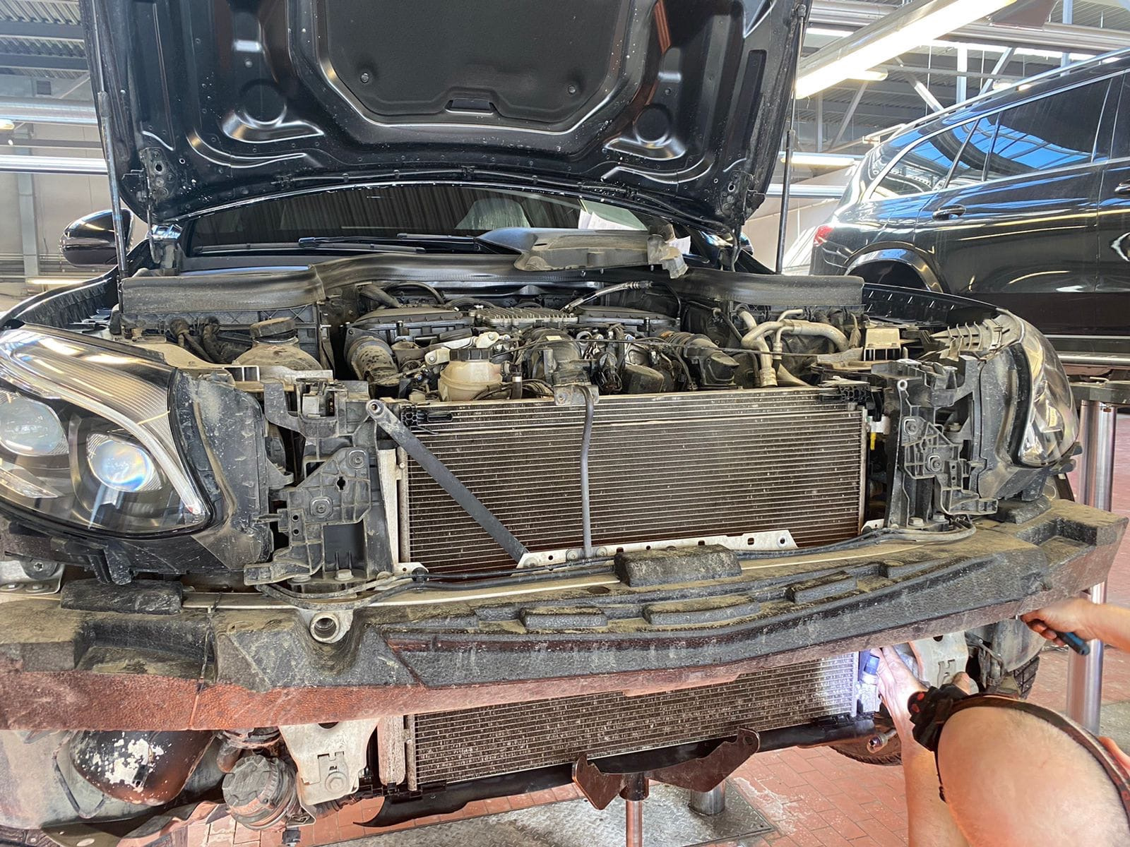 Так же перед началом сезона заморочился и помыл радики! Решил их помыть прям капитально, записался к дилеру, скинули бампер, отключили трубки и сняли радики!