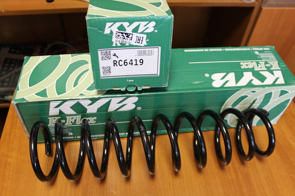 Купить в РОССКОПосле установки дисков на R16, из за просевших задних пружин, на кочках когда зад проседал колесо чиркало об подкрылок. Было решено ставить новые пружины. В магазине посоветовали KYB K-Flex RC6419.