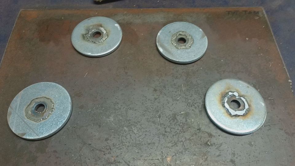 Доброго всем…вот и пришло время усиливать домики…так как посл последней покатухи я их все подрихтовал под сайлентблок)))) Как многие писали можно ставить шайбы и я последовал примеру…конечно можно и ездить так…но охото чтобы все было лодом)) Не стал заморачиваться и варить новый усиленный домик для его защиты…а поехал в крепежный магаз и купил шайбы. Наружный диаметр подобрал…а внетреннего нужного небыло…вот и пришлось колхозить и варить шайбу в шайбе))) Ну и болты в этом магазе прикупил…так как по длине стоковые будут коротки.
