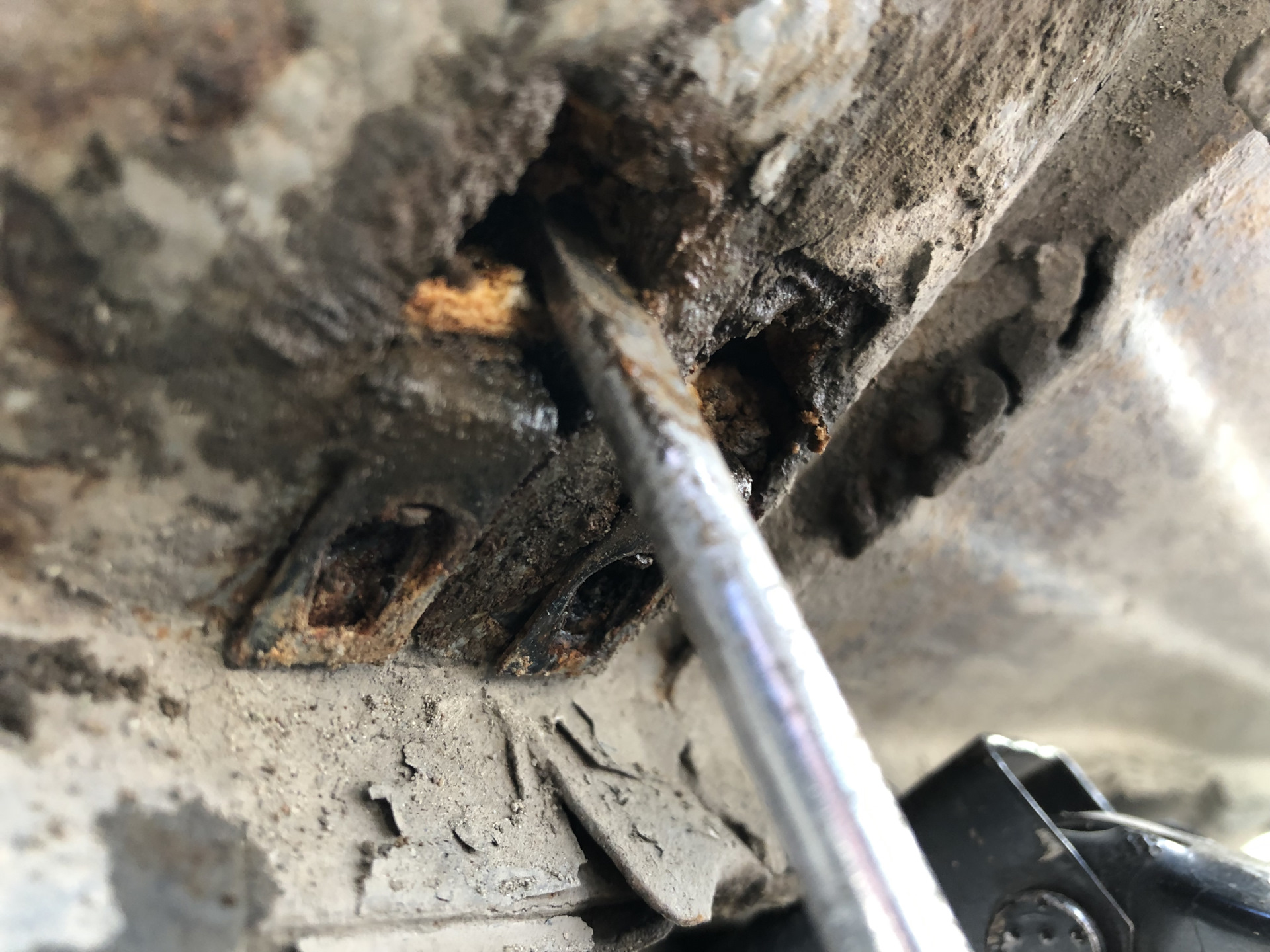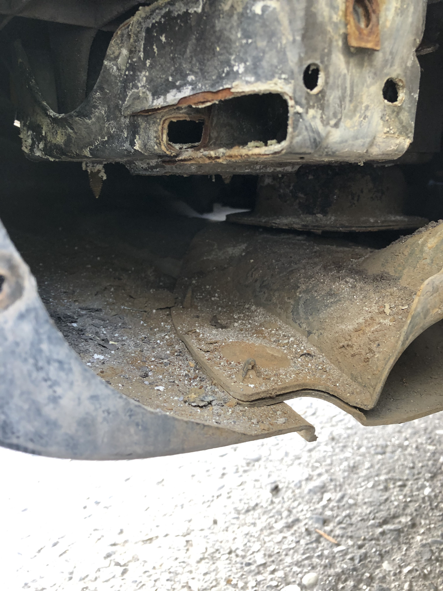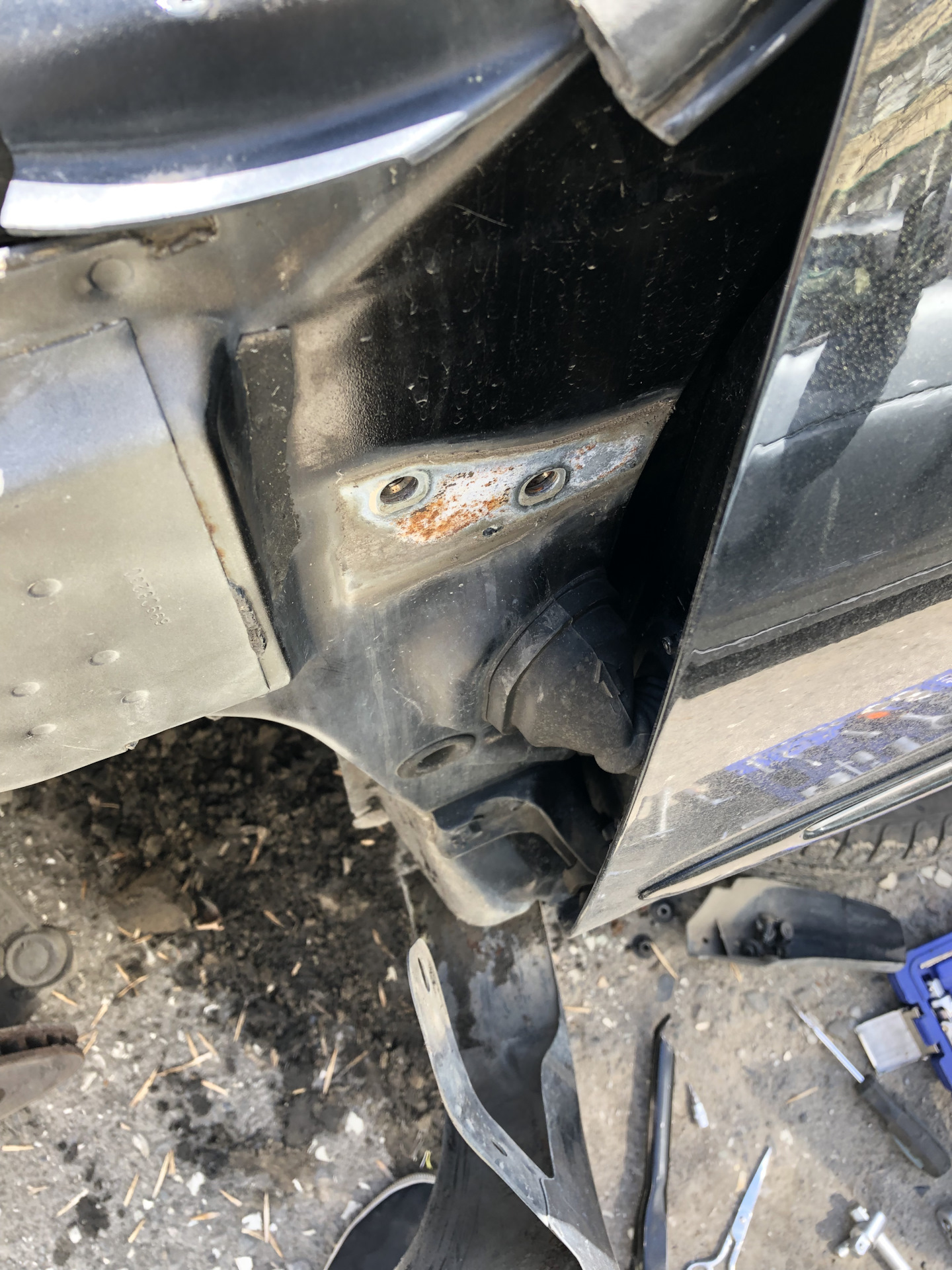 Такая байда ждала меня за крылом, крепление к которому крепится подкрылок (ушко такое маленькое) отгнило напрочь