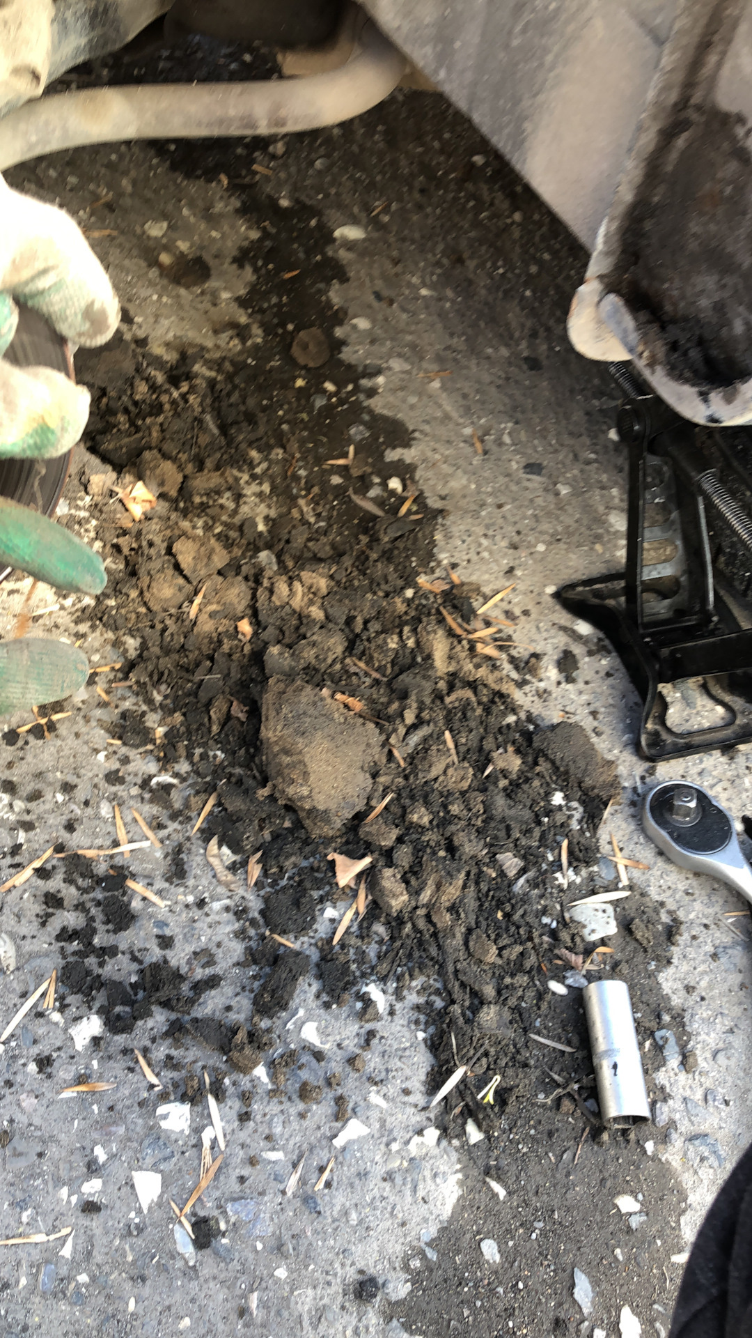 у меня слева тоже землицы многовато было когда ступицу менял а вот справа чуть чуть по сравнению с левой стороной. от пены избавляться при ремонте порогов---она зараза спереди посередине и сзади порогов где стойки---из за нее и гнеет наша машинка.
