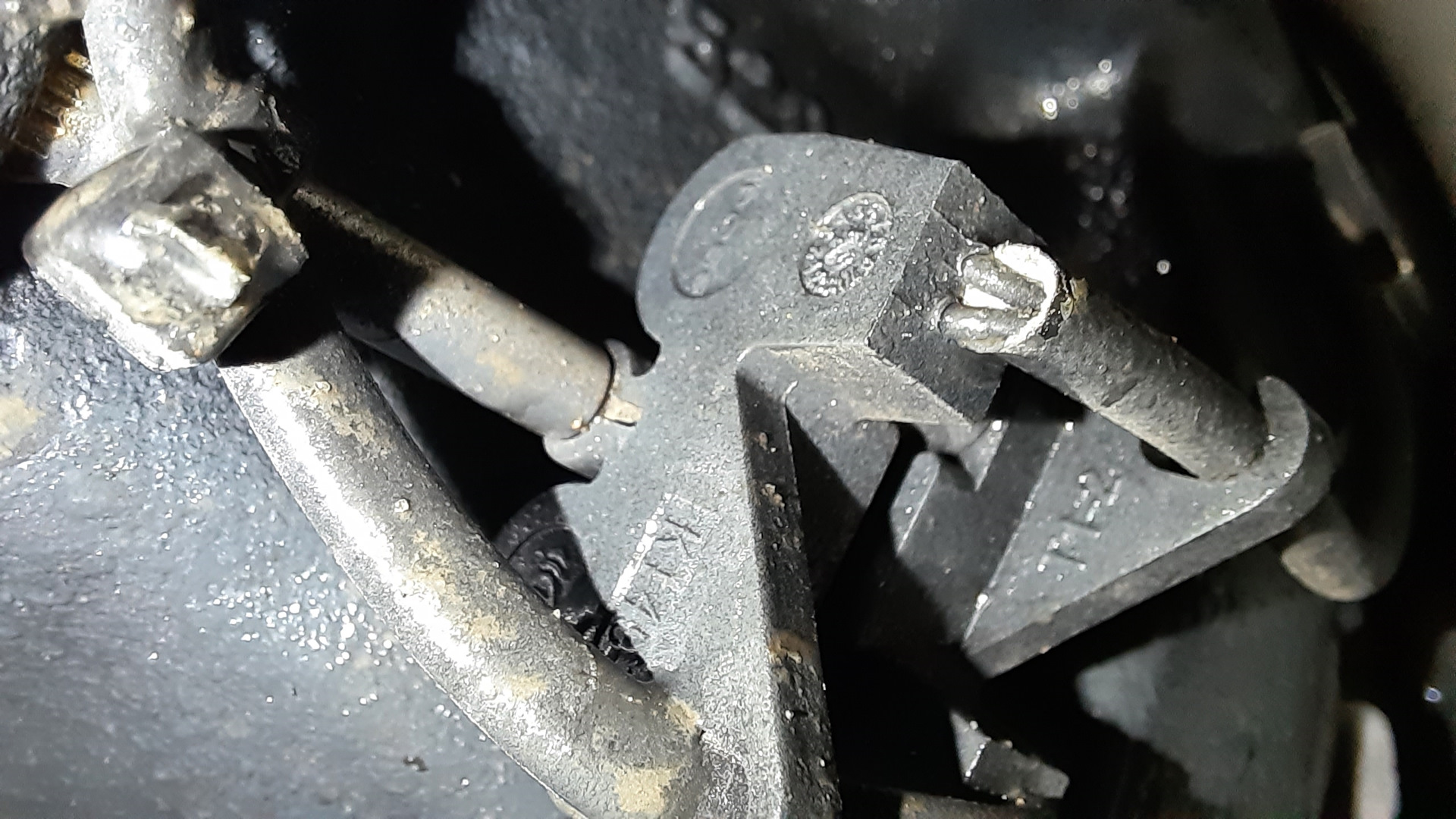 Вот, по "износу задних колодок", остались вопросики! Это появилось, после обильных луж со снегом. И есть у меня кое-какие мысли на этот счёт. Вот, если глянуть на эти проводочки на заднем суппорте, которые я сфотографировал, пробравшись в яму, при приёмке машины.