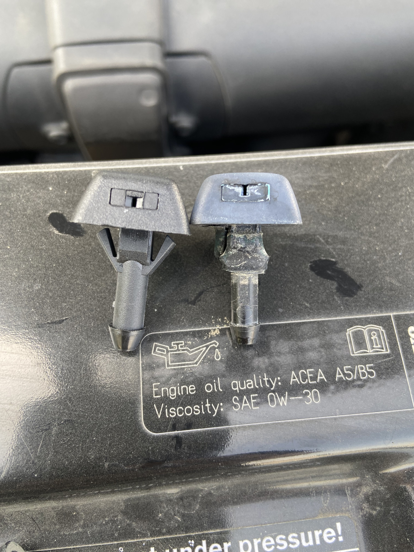 Форсунки омывателя изначально были дохлые, сломаны крепления на обеих, а правая ещё и не распыляла нормально. Оригинальные новые не нашёл, а б/у не хотел, они все древние и ломаются. Заказать сейчас проблематично, все з/ч заказывал из России, теперь с этим большая Ж. Короче решил попробовать заказать с али. Форсунки пришли, но как всегда с китаем, нужно что-то дорабатывать.