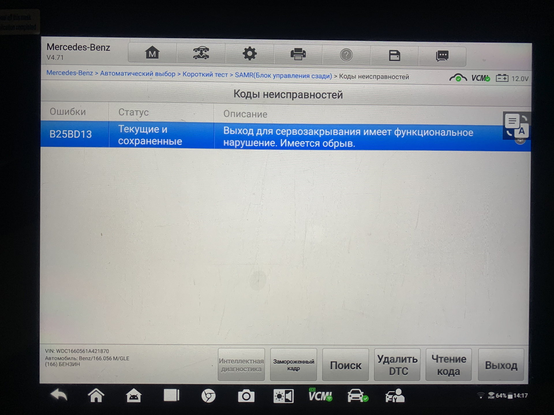 Подключи сканер, ошибка B25BD13 Выход для сервозакрывания имеет функцию нарушения.