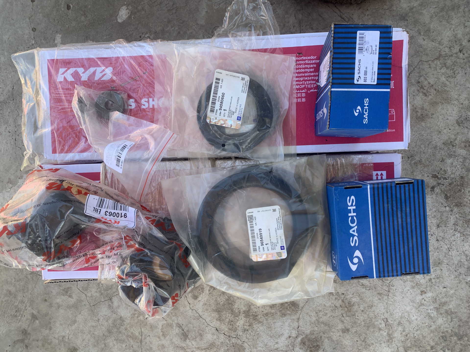 Даже не вспомню сколько лет назад некая часть передних пружин покинула автомобиль. Случилось это почти одновременно. Сильно не огорчился, морда стала чуть ниже и вид стал по лучше. Вот только на сильных кочках било в отбойники. С переходом на 17 колёса стало совсем не комфортно. Да и пробег уже за 200. При том что машина покупалась с пробегом чуть больше 120 и спереди менял только опоры и подшипники. В этот раз решил поменять все. А именно стойки, как обычно Kayba, опоры Sachs, подшипники Ina, отбойники и пыльники или как их правильно назвать тоже Kayba, пружины оригинал б/у с седана на автомате ну и резинки под пружины GM. По итогу опоры производства Китай, стойки Тайланд, хотя до этого стояли точно такие же и тот же самый Тайланд, за пробег более 100 тысяч не потекли, но газ с правой стойки испарился почти совсем. Подшипники маде ин Германия. Ну и резиночки на упаковке gm, внутри Деу. На мое удивление, открутилось все очень легко и без проблемно вышли все болты. Хотя крутили их последний раз лет 5-7 назад. Старые стойки были собраны через одно место, пыльники все разбиты, так как стояли неровно. Отбойники совсем устали и разложились на несколько частей. От нижних резинок ничего не осталось, оно и понятно, слопанные пружины не прилегали к основанию стойки всей своей плоскостью. При сборке стоек возник вопрос как правильно поставить верхнюю опору пружины. В интернете увидел два варианта. В первом: вырез на «пыльнике» пластиковый стаканчик, должен быть напротив начала пружины. Второй вариант: тот же самый вырез, только нужно совместить его с отверстием в тарелке стойки. В итоге собрал по первому варианту. Попутно хотел поменять колодки и тут встрял на супппорта. Оба поршня заклинили, плюс на одном закисли направляющие, хотя ставил не так давно ремонтные скобы с направляющими и новые пыльники. Каким-то образом, внутрь попала влага. Кое как разобрал, почистил, сказал и собрал обратно. Суппорта поменял на б/у перебратые. Покупал пару лет назад. И соответственно новые колодки. После сборки передок поднялся примерно на 3-4 сантиметра и теперь не так страшно ездить по нашим дорогам 😁. Попутно переобул на летний комплект. После сборки, чуть проехался. Пропала большая часть посторонних звуков в передней части. Что-то ещё осталось. Но это скорее всего рейка даёт о себе знать. Есть маленький люфт в ней. Цены на все удовольствие мало радуют, но никуда не денешься. Чуть ранее была замена наружного шруса, порвался пыльники граната медленно похрустывая умирала. Взамен установлена Meyli, ценник на момент замены 6200 руб. ну и естественно ребята, которые меняли, даже не заикнулись о состоянии пыльника на внутреннем шрусе, который доживает свои последние мгновения. Кстати он тоже меняный. Пробег у него не большой, но вот менялся около 5ти лет назад и резина уже устала. Был установлен шрус фирмы Lynx. Голимый Китай, в то время стоящий копейки.