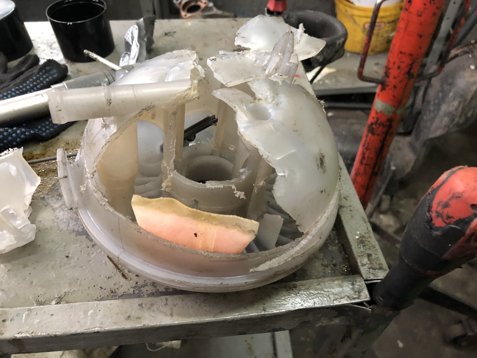 1. Оригинальный бачок новой ревизии 5Q0121407M, который ни о каких мешочках не слышал и в силикатных связях, порочащих его внутреннюю чистоту замечен не был.