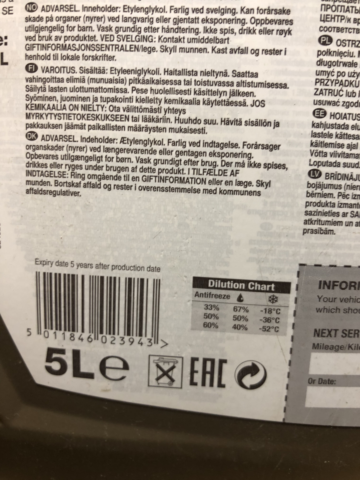 Всего было выполнено 2 промывки водой, поле чего в систему заливался уже разведённый, с учётом не сливаемого остатка порядка трех литров воды в системе ОЖ, антифриз. После двигатель хорошо прогревался.