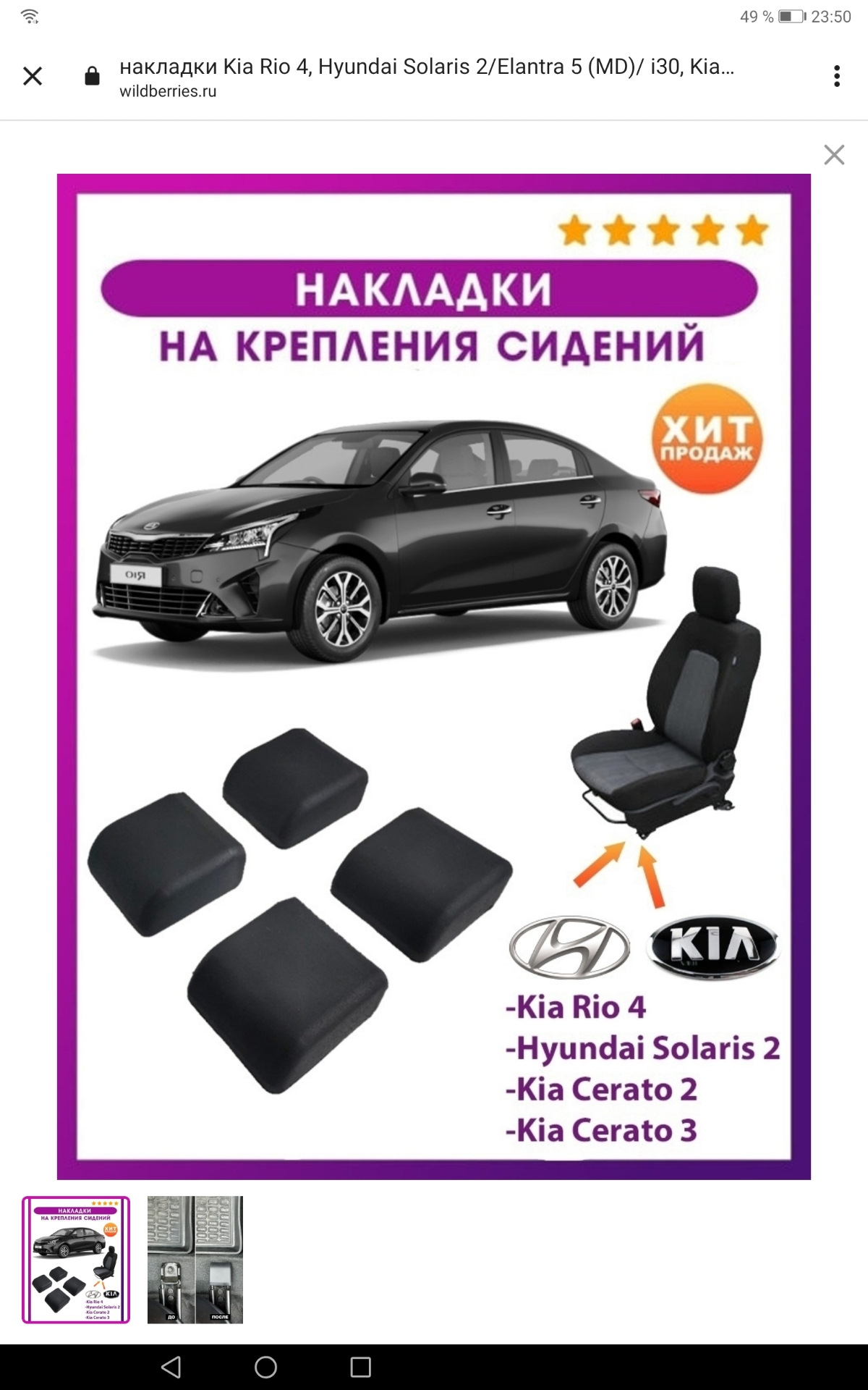 есть на велдберис. производитель пишет что подходят. на солярисах крепление к полу уже. на Рио пока не видел, поэтому ещё не заказывал