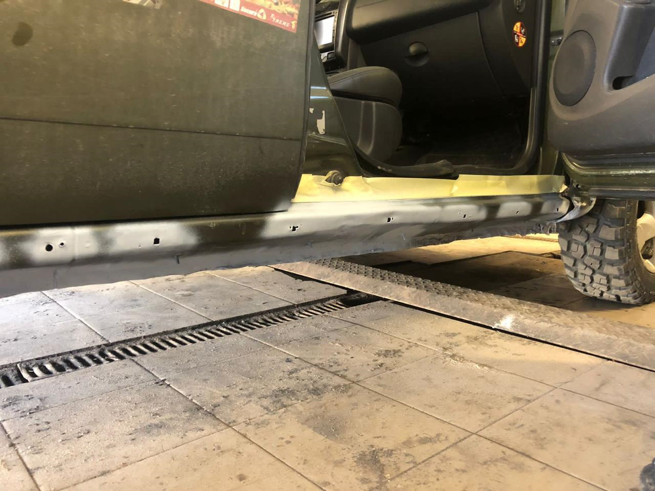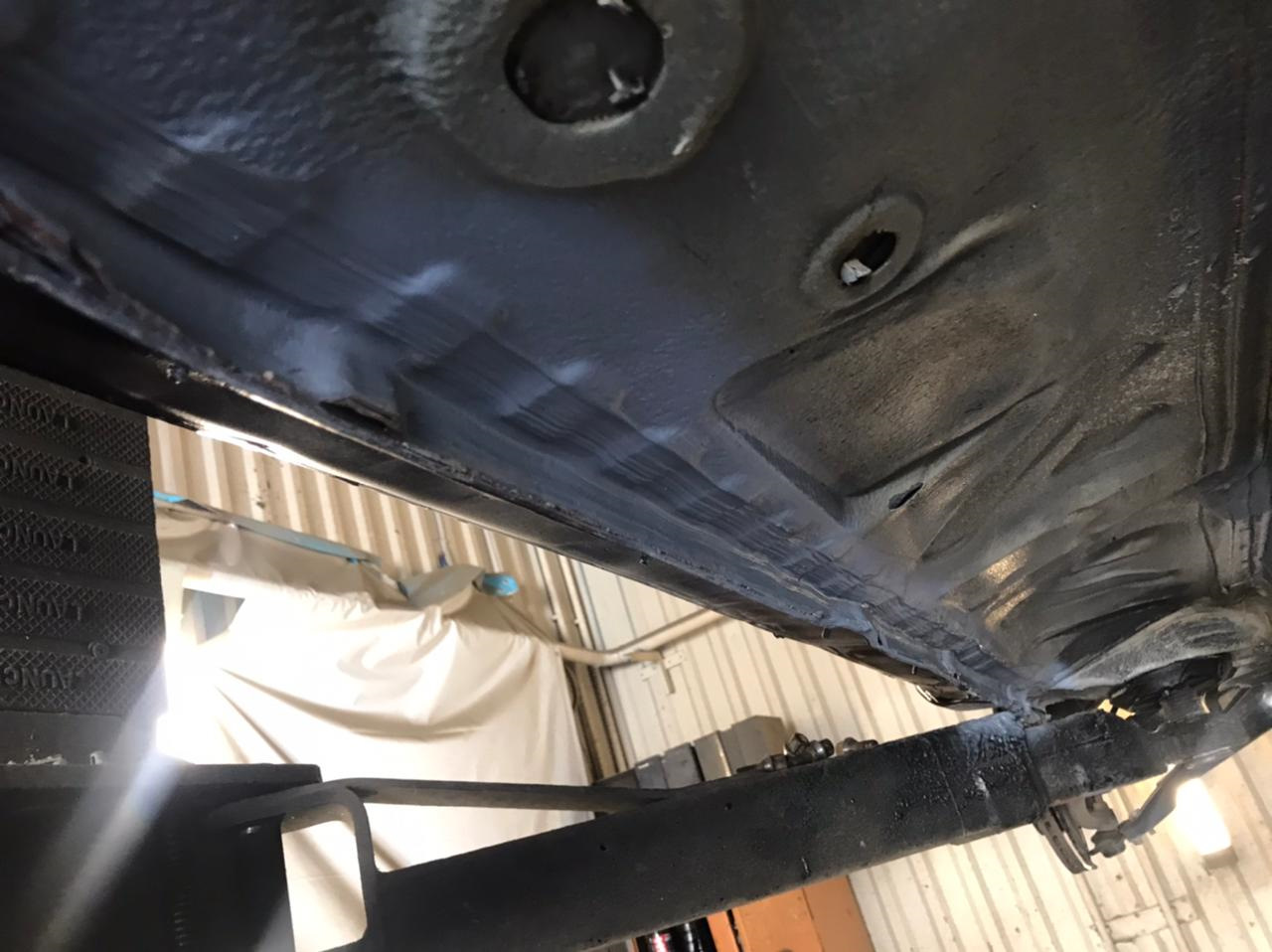 Порогам прям совсем плохо. Это надо было вздирать весь заводской гермет, вытравливать ржу и покрывать чем то более серьёзным, чем просто антикором(это я из личного опыта). Как временная мера, пойдёт.