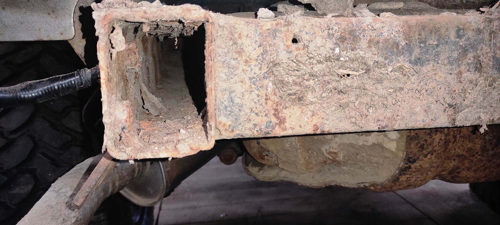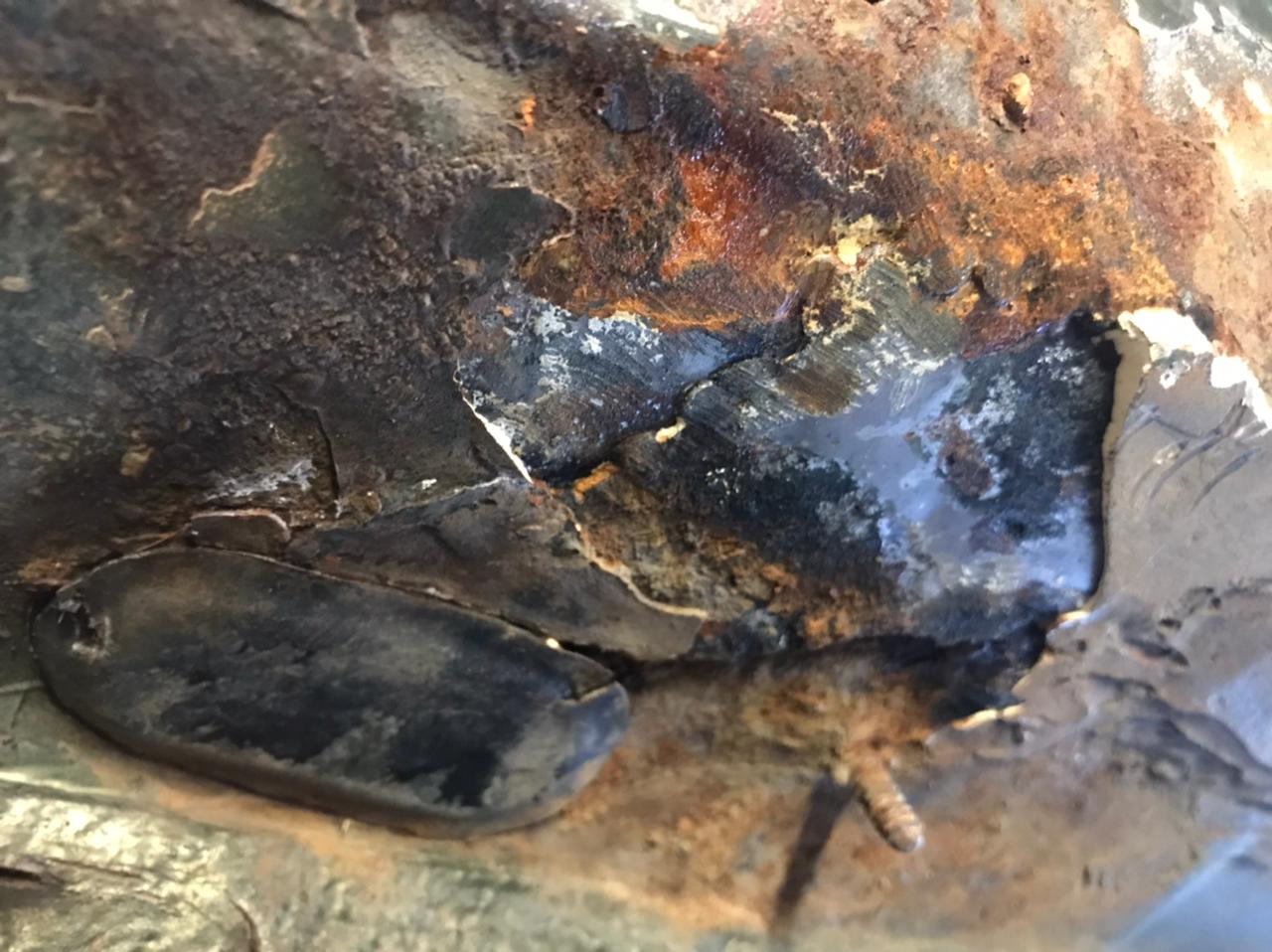 Пескоструй применяется перед антикором, если все очень плохо и ржавчину иначе не отодрать. Тут этого не понадобилось. Если после удаления ржавчины остаются дырки или существенно элементы ослабляются — приходится ставить заплатки. Одну все ж пришлось поставить.