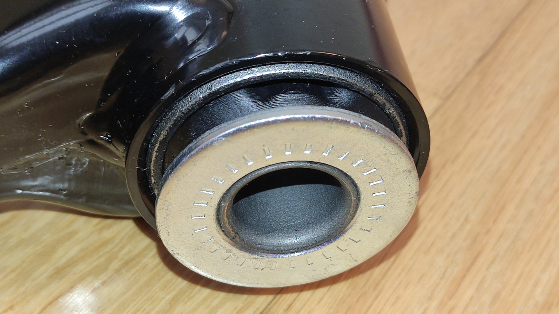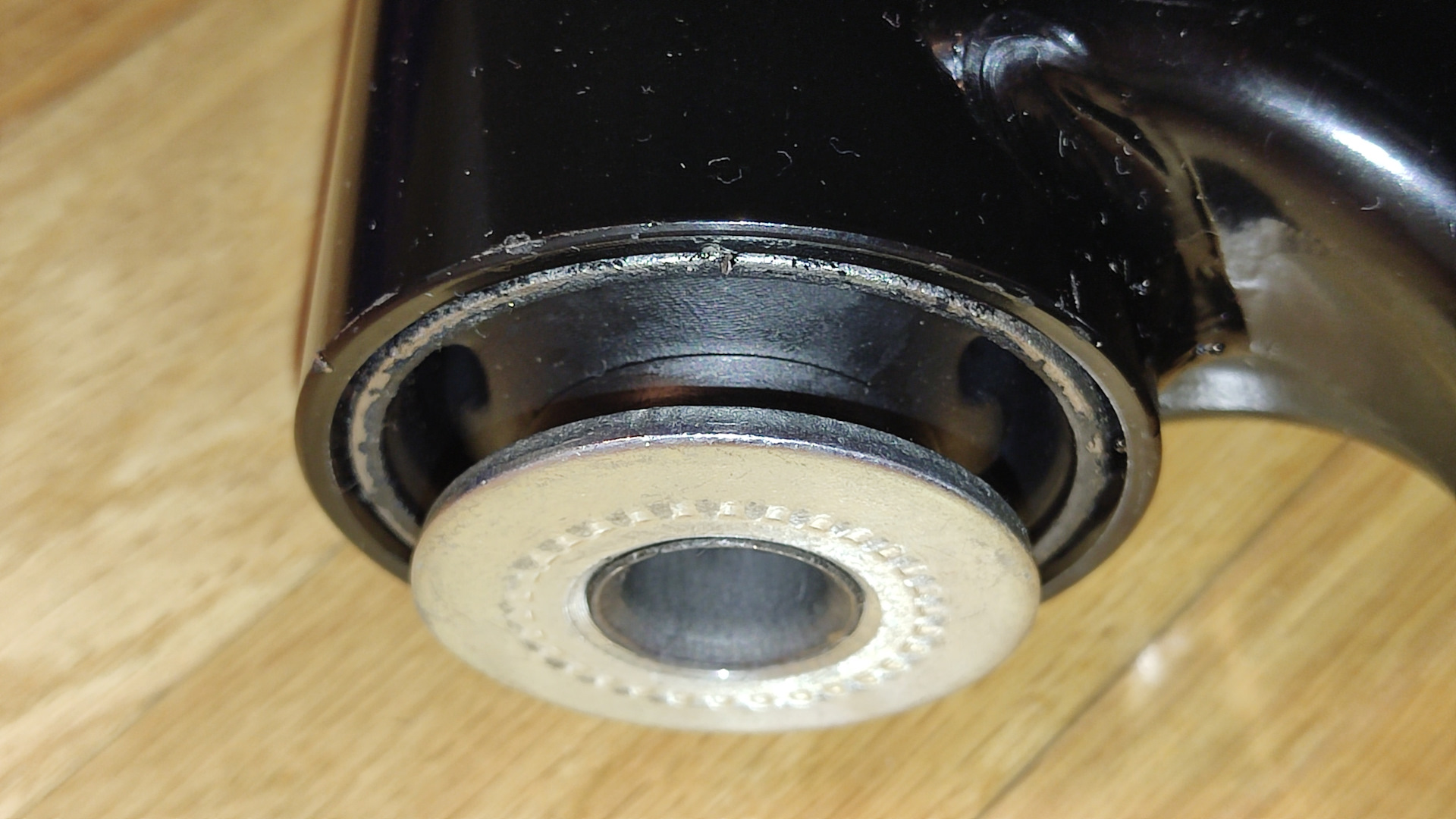А вот здесь совсем маленькая ложка дегтя, причем мало верится, что этот дефект допущен на производстве. Оптимизм. Маленький сайлентблок сидит в своем посадочном месте не совсем соосно. На одном из 2-х рычагов CTR. Может быть я придираюсь, но факт остается фактом. Не исключаю, что это дефект, полученный при хранении или транспортировке. Упал или уронили (((