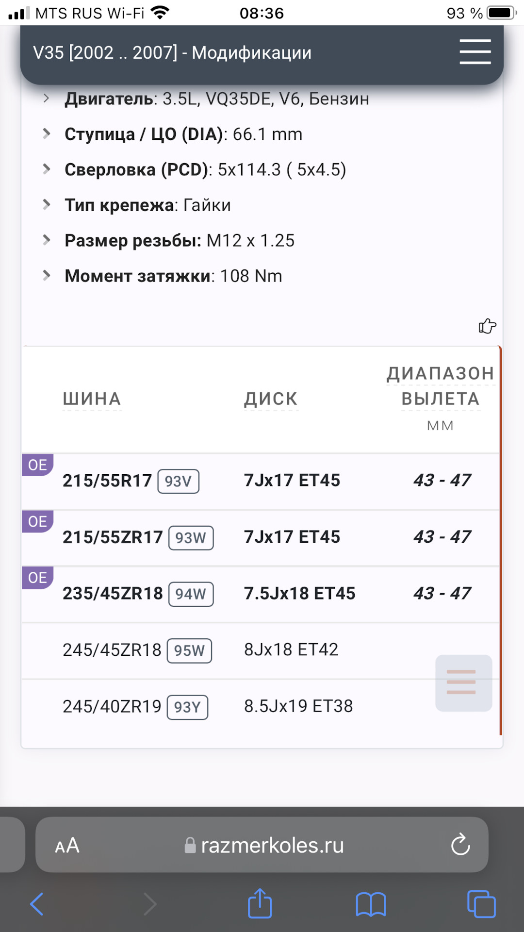 У меня такие как на картинке от 36 ская 7.5 и 8.8 р18 резя 225/45/18 и 235/45/18 все отлично