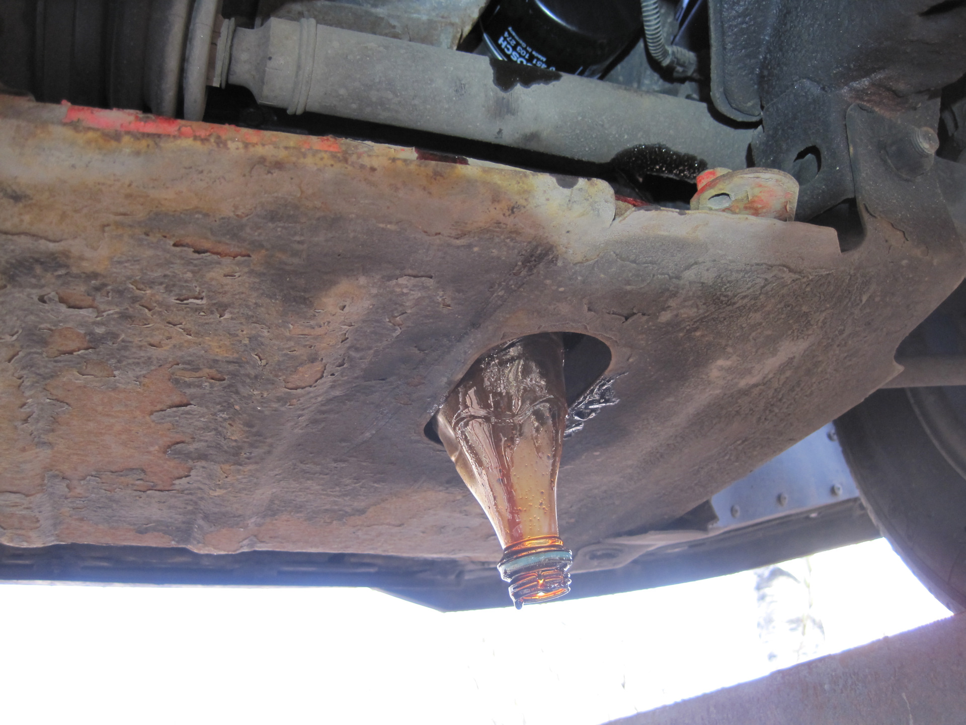 Сливал через отрезок бутылки, что бы не залить защиту изнутри.