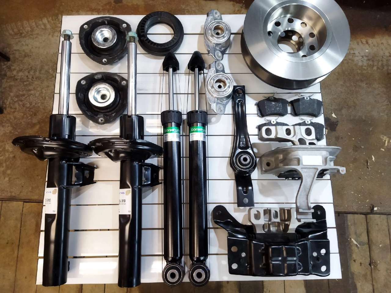 Сегодня сделали большое ТО подвески — заменили передние и задние амортизаторы с опорами, опорными подшипниками, отбойниками. Я бы не сказал, что подвеска сильно беспокоила, но в целом чувствовалась какая-то расхлябанность, да и может просто привык. Ещё поменяли все подушки, кроме той, которая в подрамнике. Ну, и конечно же, перепрессовали подшипник на шкиве компрессора кондиционера :)